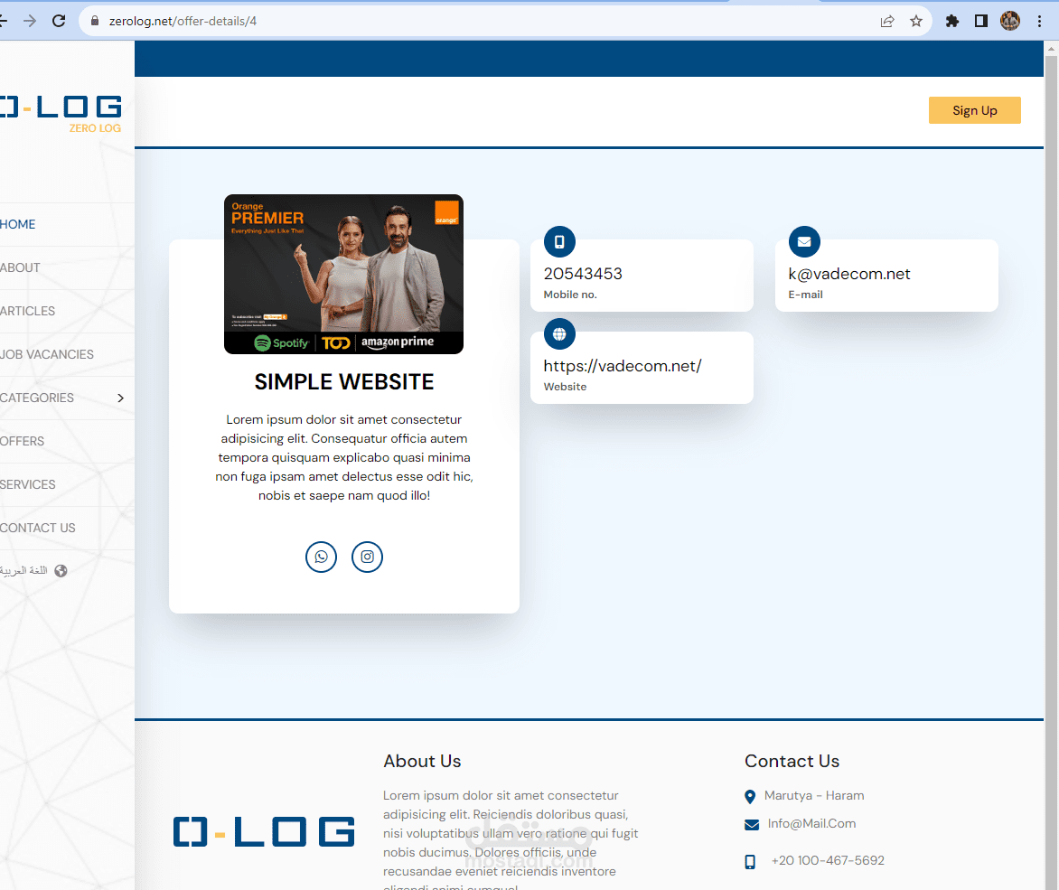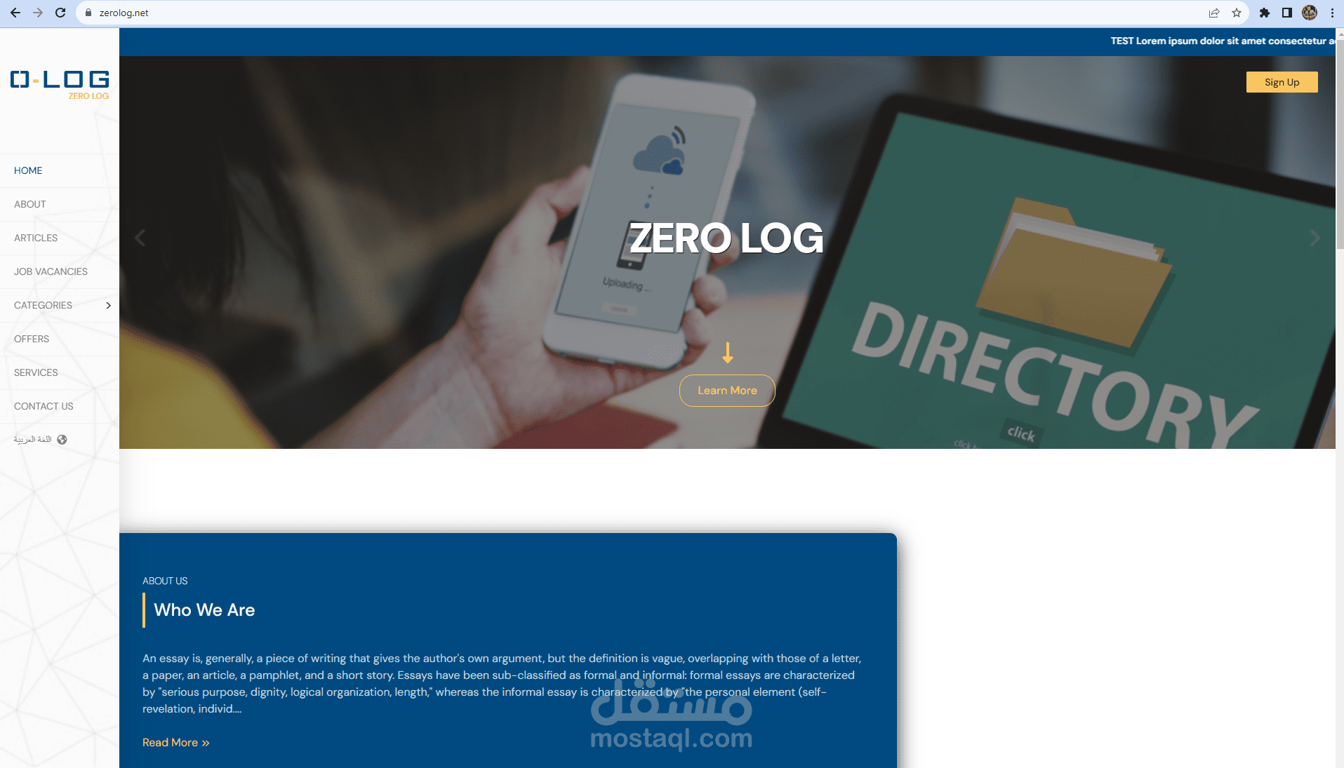 موقع باللغتيين العربى والانجليزى لعرض اعمال الشركات ( دليل شركات ) وعروض الشركات ووظائف لها ومقالات والعروض الخاصة بالشركات مع لوحة تحكم خاصة بها