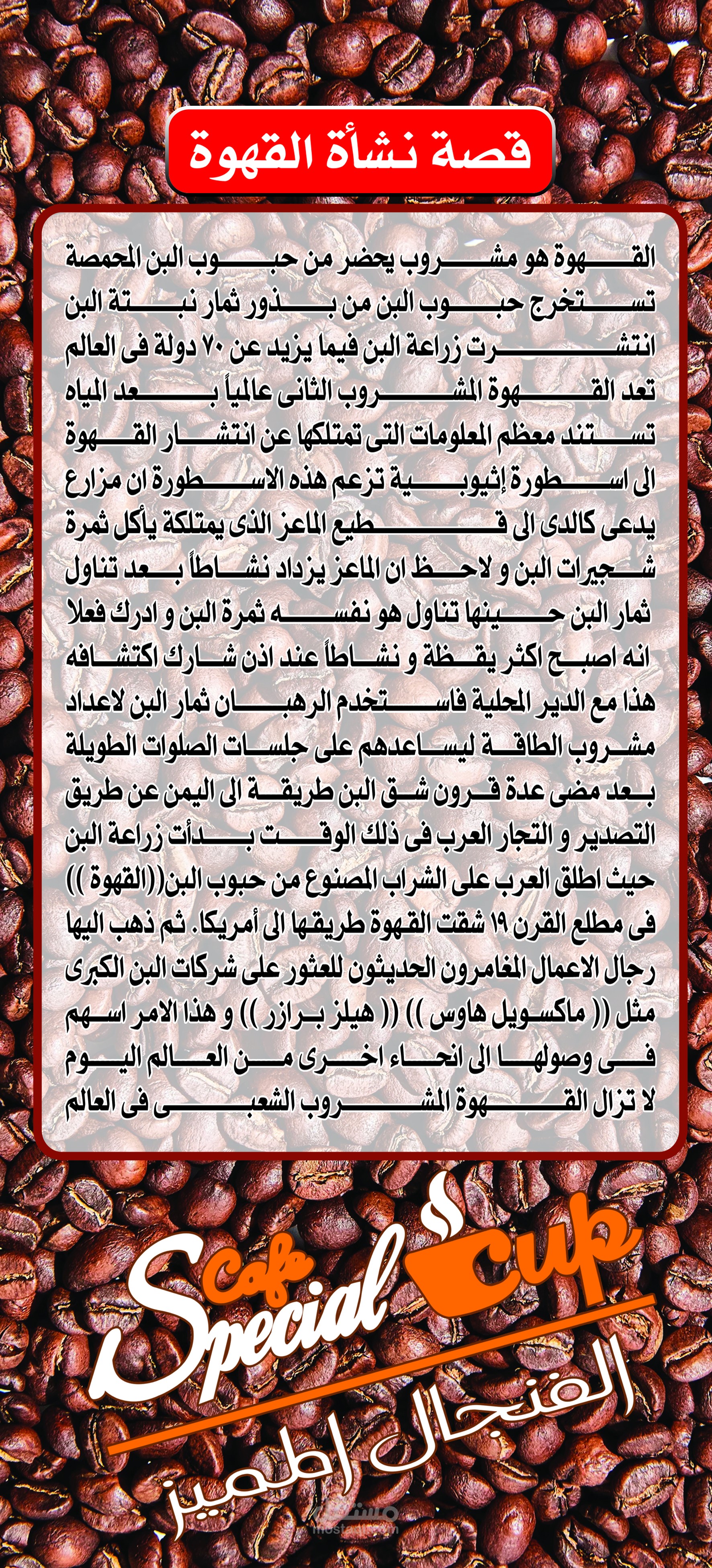 ملحوظة : كلمة فنجال اقتراح العميل و اصر على تغيير الاحرف الاصلية لكلمة فنجان ظناً انا ذلك شئ مميز (( و هى أيضاً صحيحة لغوياً))