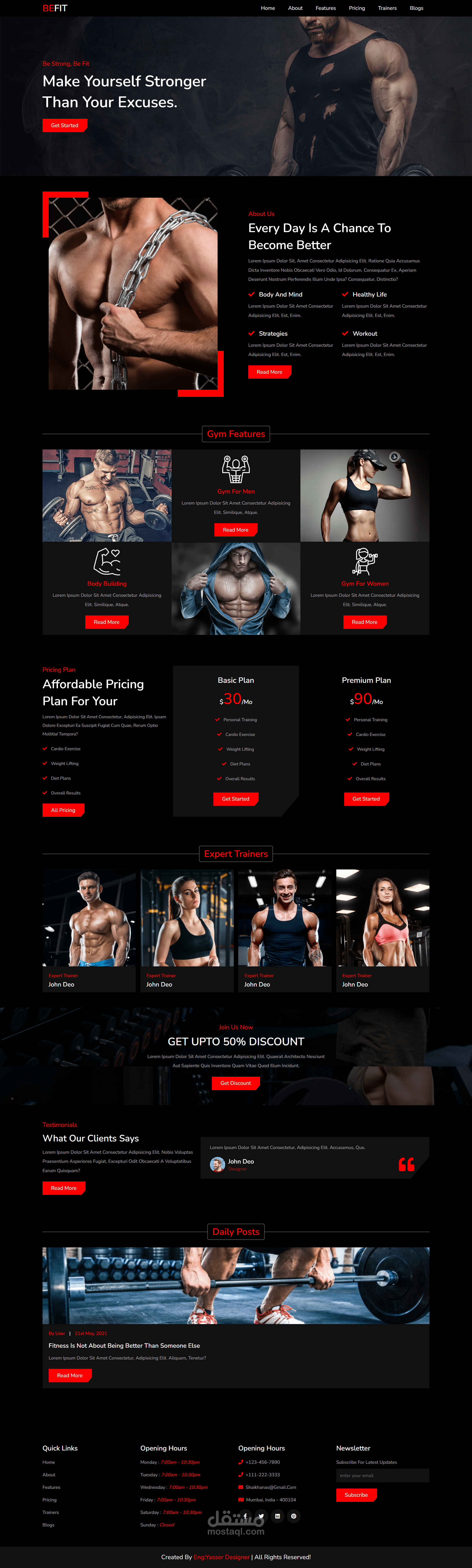 موقع "Be Strong, Be Fit" هو موقع ويب مخصص للصحة واللياقة البدنية. يهدف الموقع إلى توفير مصدر شامل للأشخاص الذين يبحثون عن طرق لتعزيز صحتهم ولياقتهم البدنية. يتيح الموقع للزوار الوصول إلى معلومات مفيدة حول التمارين والتغذية والمدربين المحترفين.