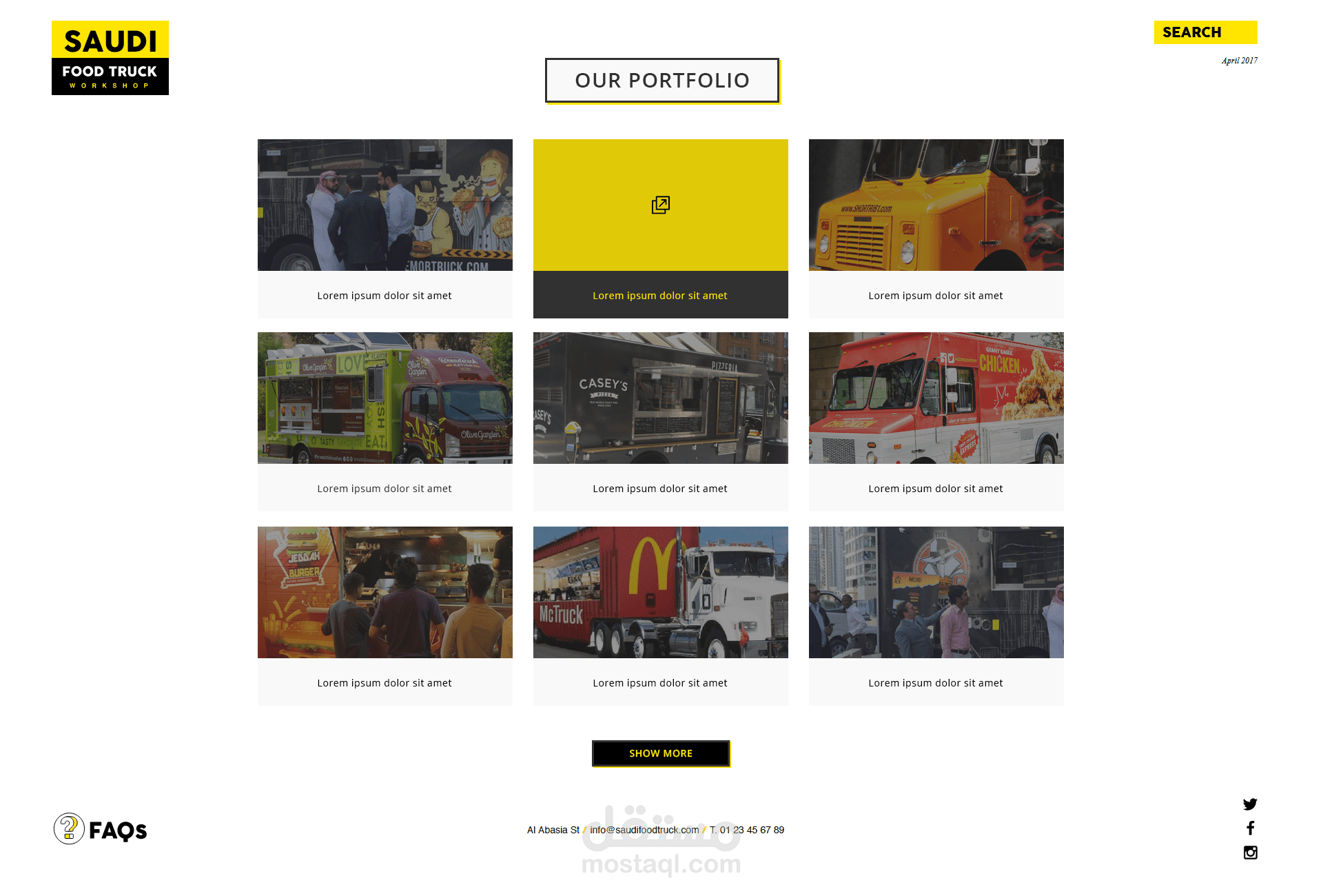 تصور لموقع متخصص بتوفير خدمات عربات الطعام المتنقلة Foodtrucks