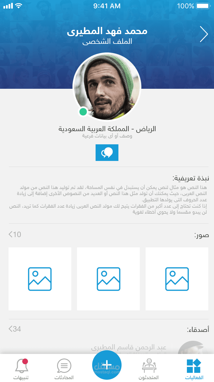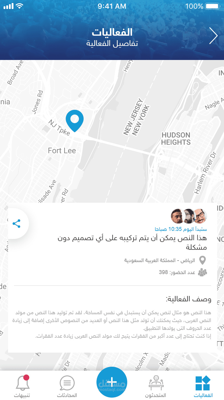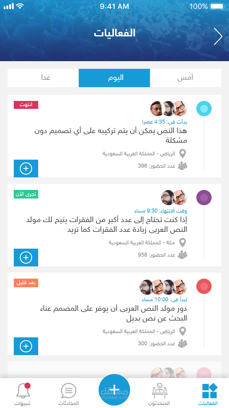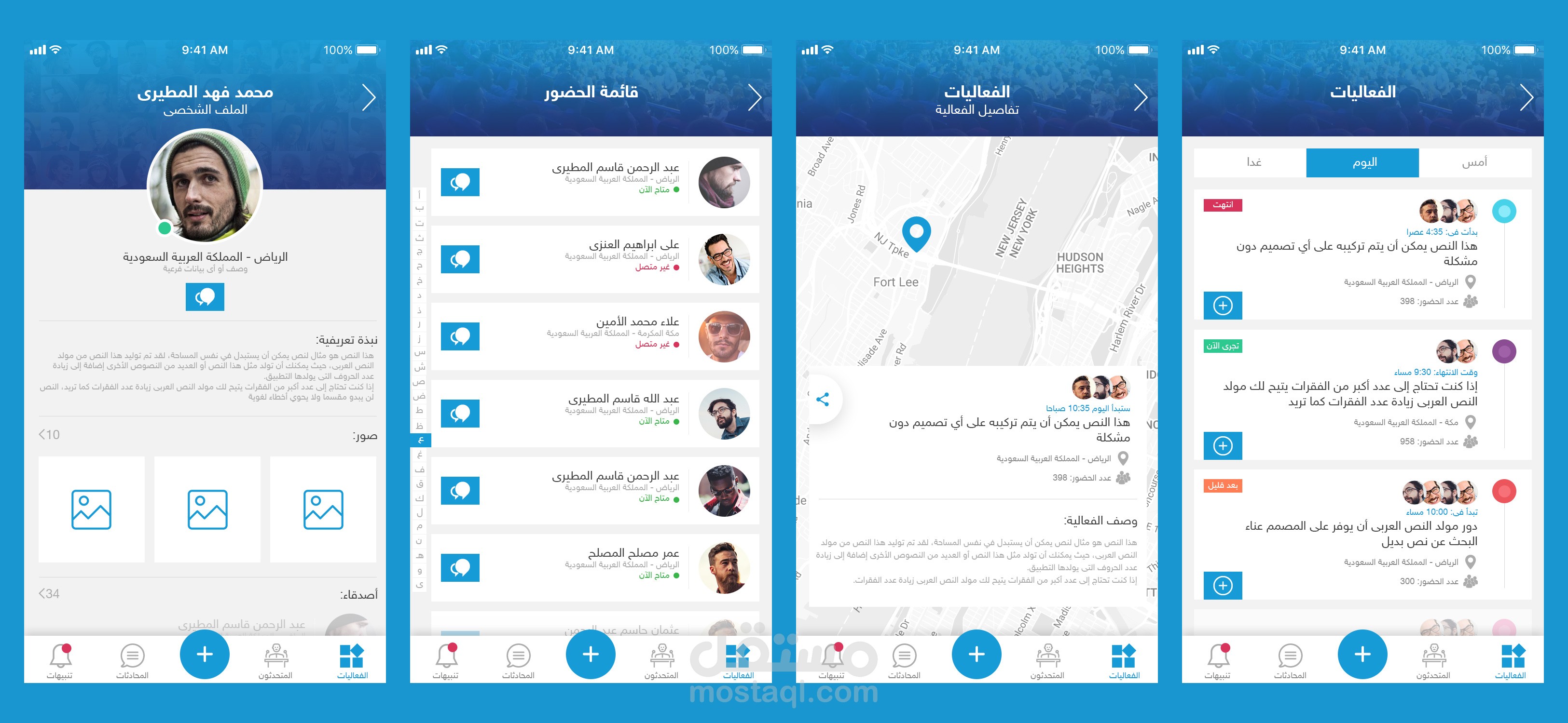 تصور لبعض صفحات خاصة بتطبيق مهتم بالأحداث و الفعاليات.