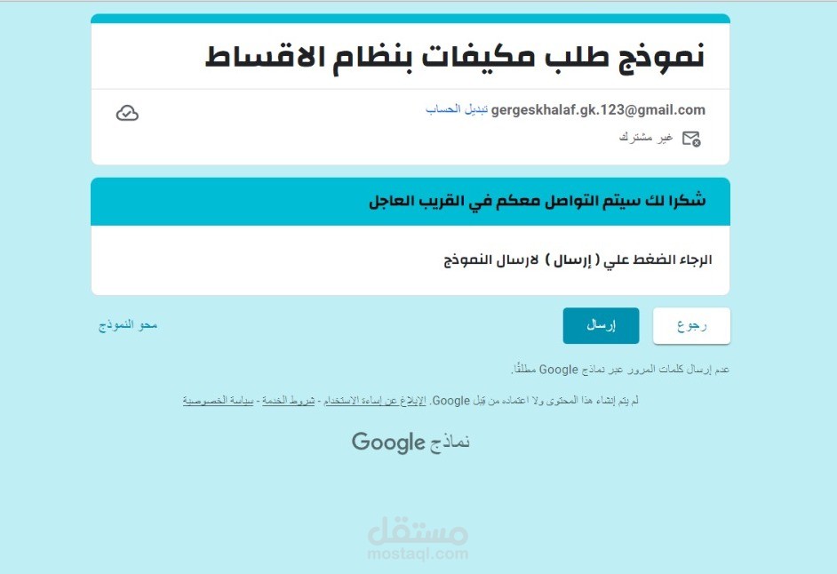 إنشاء نموذج ( جوجل فورم ) احترافي لمشروع تقسيط المكيفات