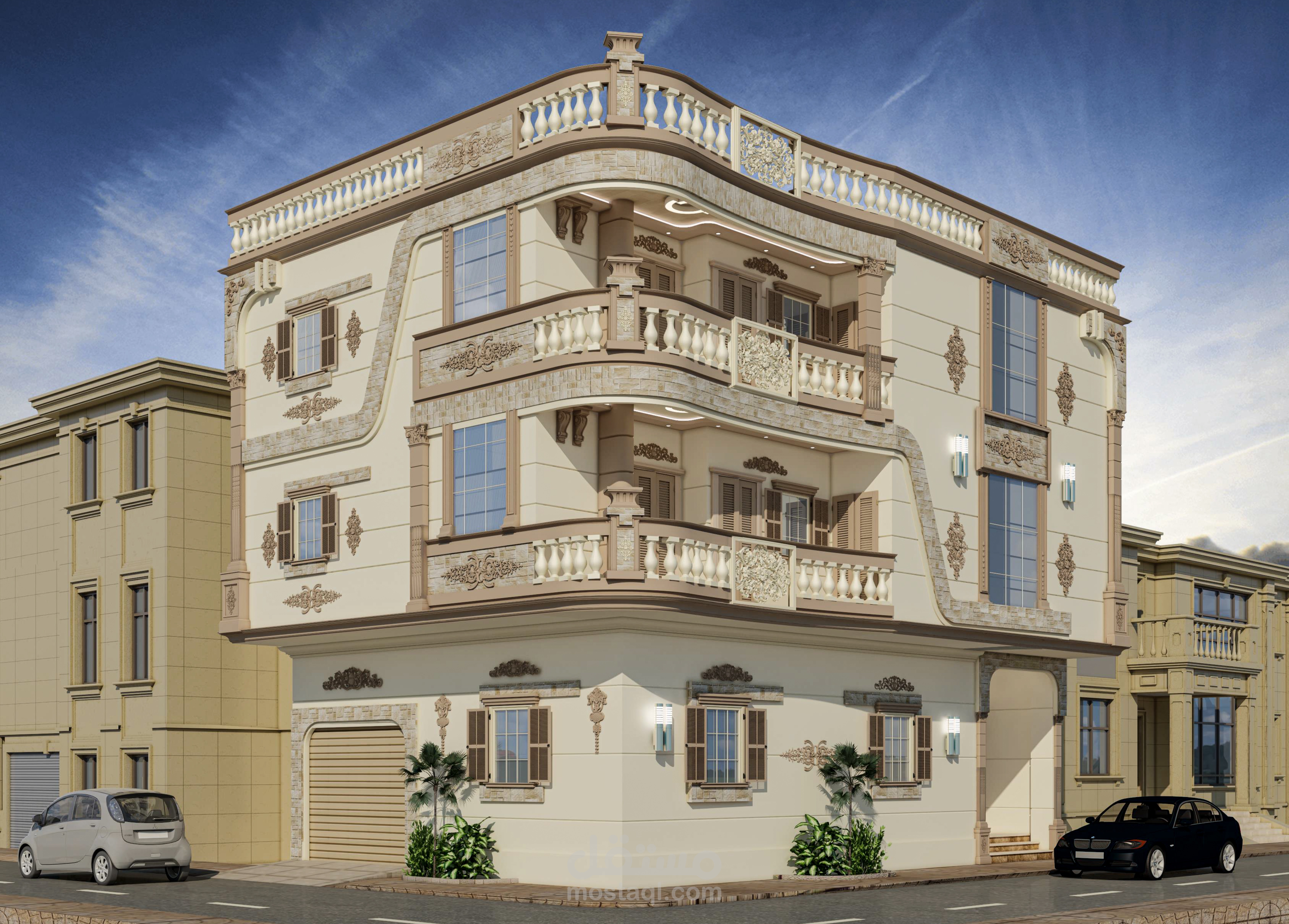 مبنى نيوكلاسيك بسيط بالوان هادئة توحى بالبساطه