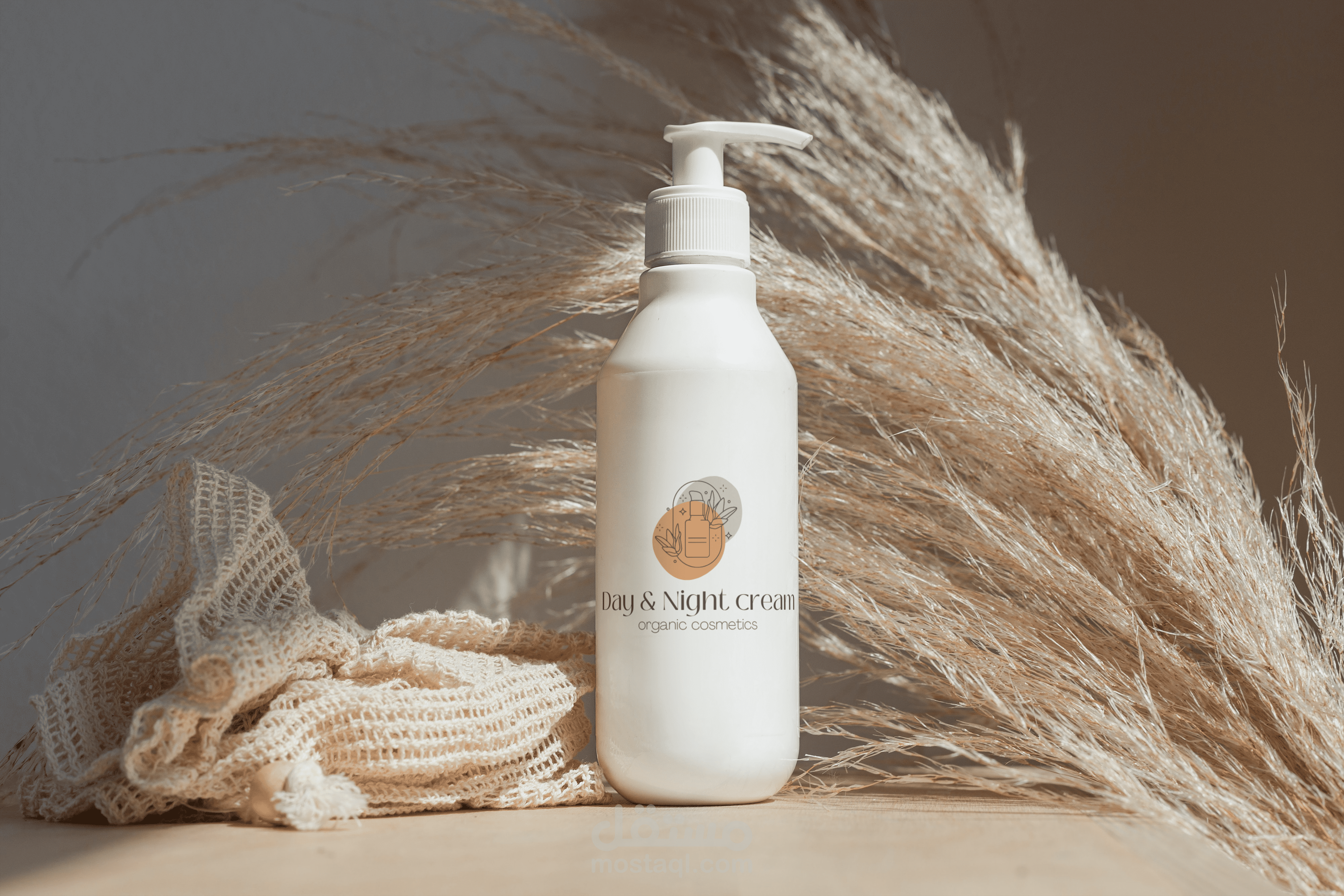 تصميم لوجو لمستحضرات تجميليه, وصنع mockups له لتسهيل عملية تخيل شكل اللوجو بعد الطباعة على المنتج.