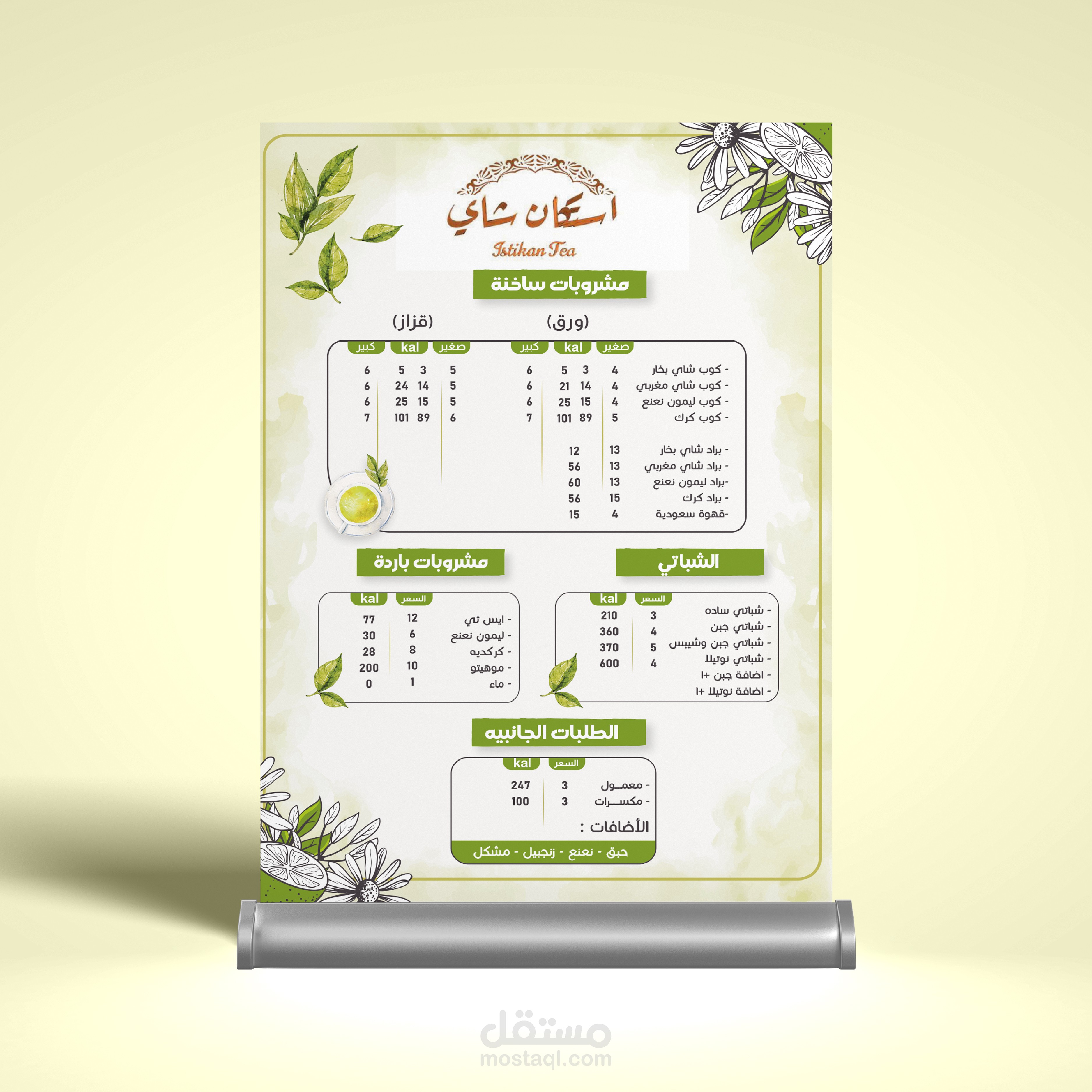 يتكون المنيو من صفحة واحدة فقط لكن بنموذجين أحدهما بالأبيض والأخر باللون الأسود
