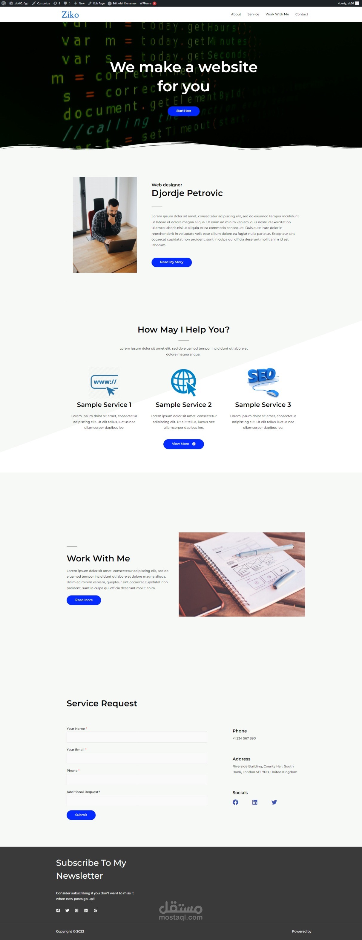 الموقع تم إنشاؤه بواسطة الووردبريس مكون من صفحة واحدة