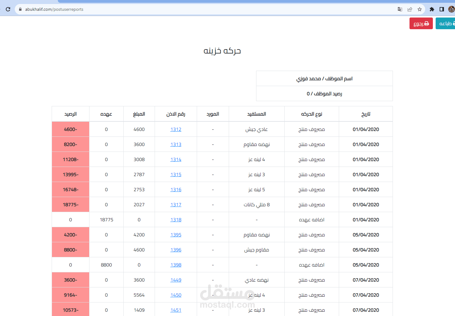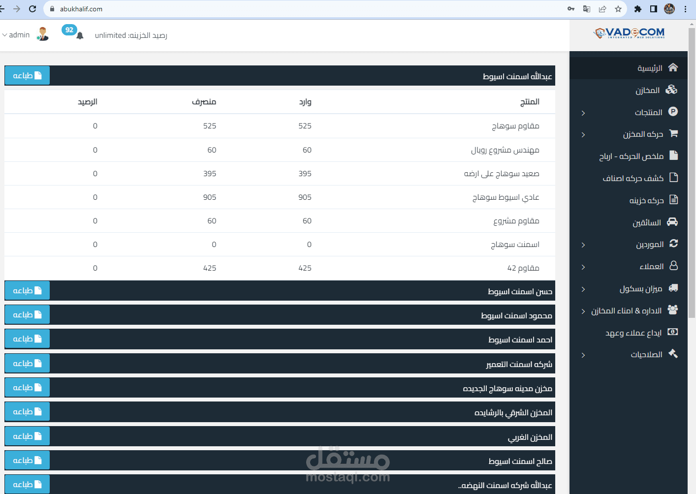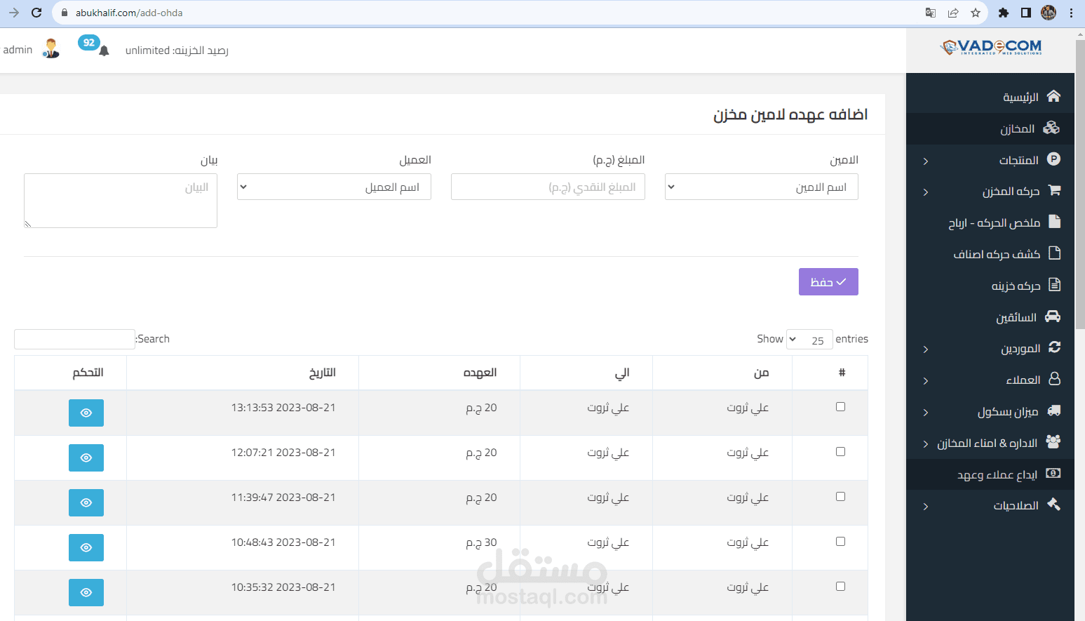 سيستم لمخازن ومتابعة عملية البيع وكشف الحساب و اضافة عهد لموظفيين وايداعات لعملاء ومتابعة رصيدهم