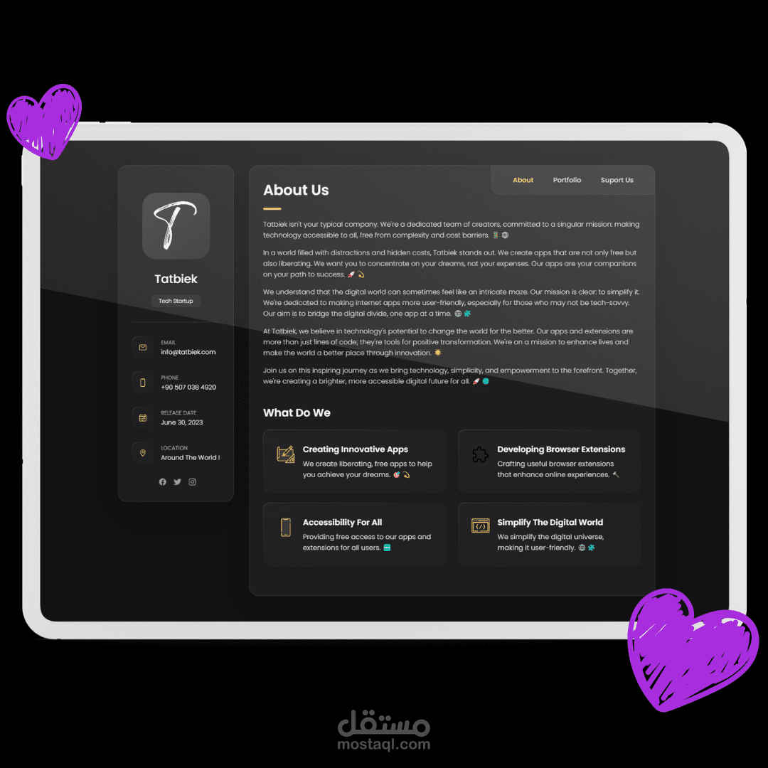 At Tatbiek, we believe in technology's potential to change the world for the better. Our apps and extensions are more than just lines of code; they're tools for positive transformation. We're on a mission to enhance lives and make the world a better place through innovation.