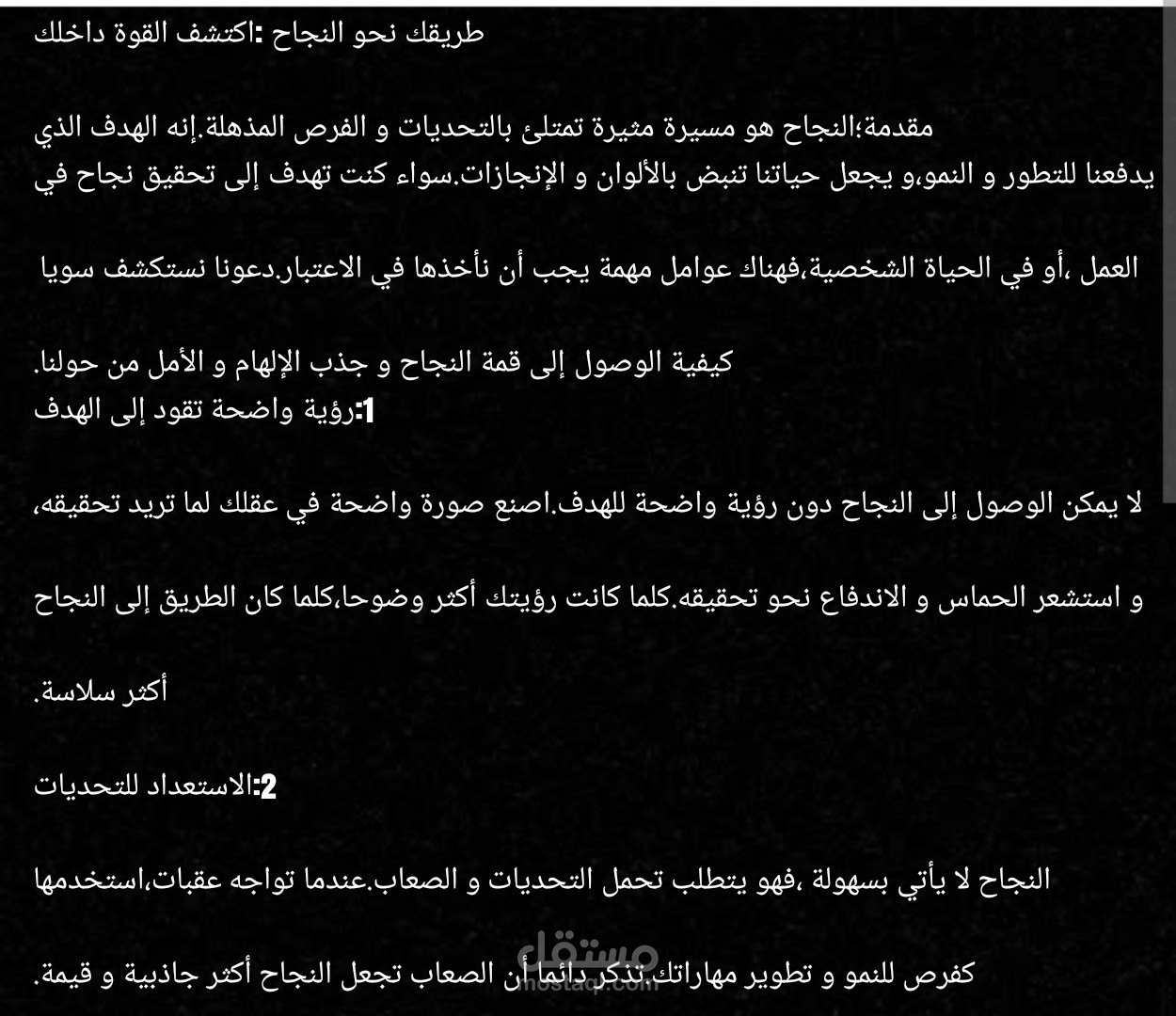 بدأت المقال بمقدمة تلفت الانتباه تقدم مفهوم النجاح وأهميته في حياتنا.