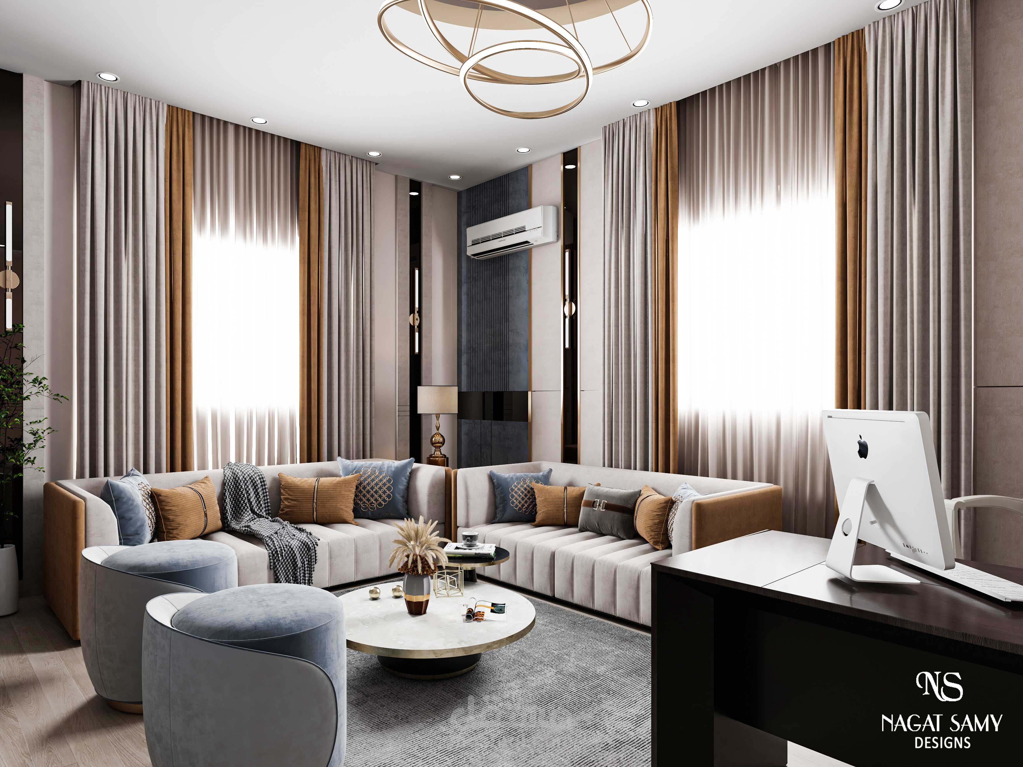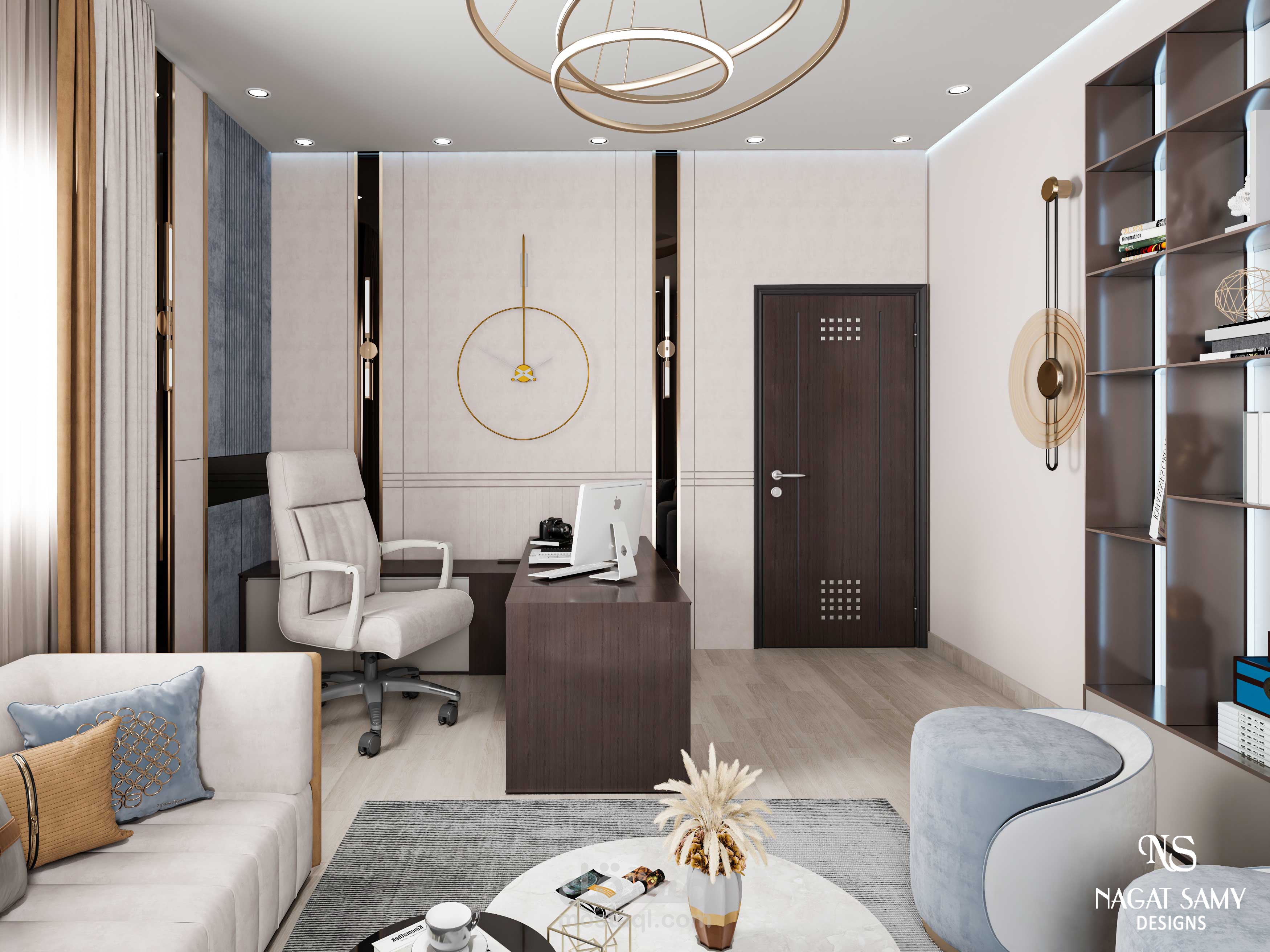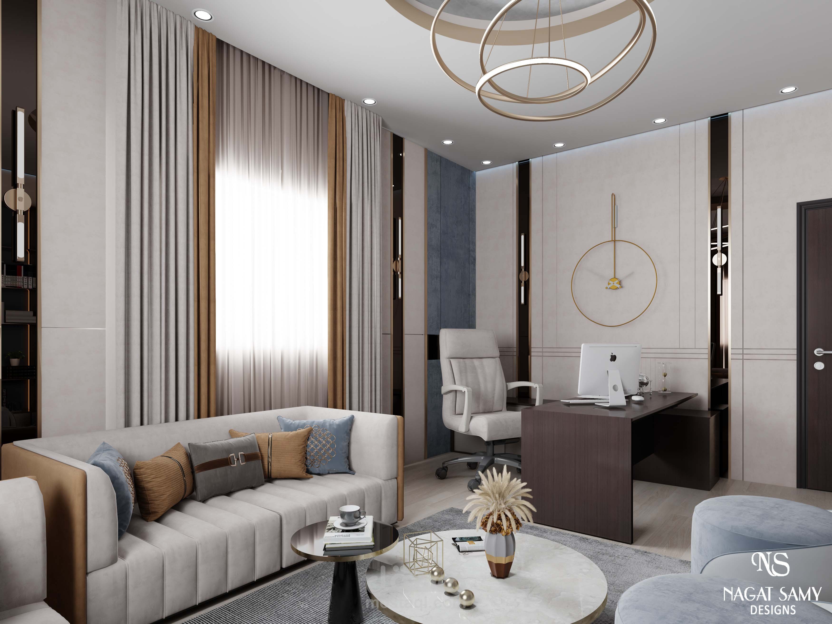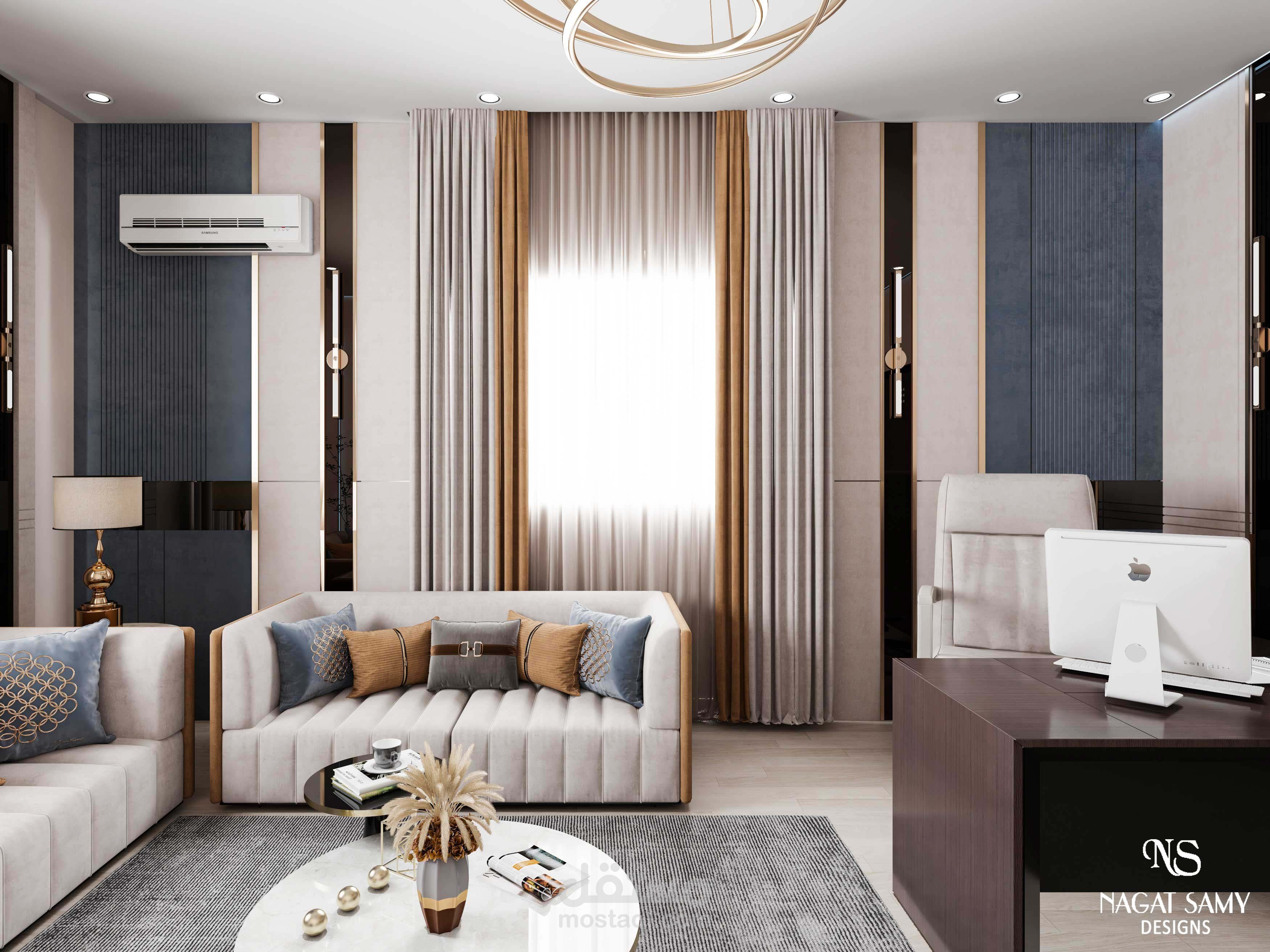 مكتب مودرن بتصميم عصرى والوان جذابة حسب طلبات العميل