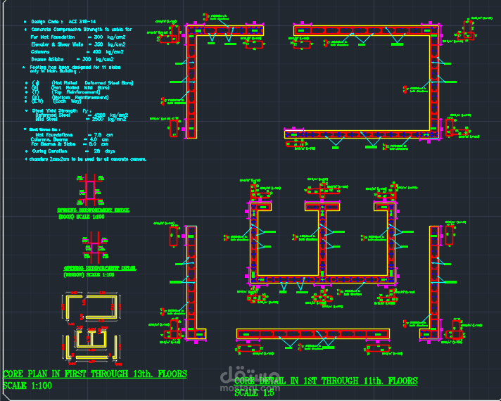 For the design of structural elements, the ACI 318-14 Code is used.