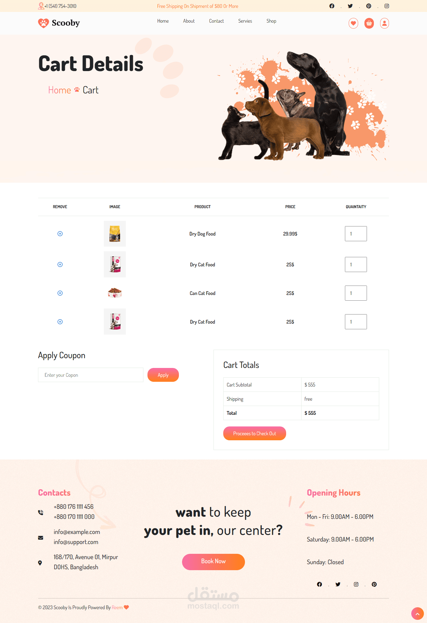 this website for pets that you can booking a hostel for your pet and also you can shop for him and you can book for her grooming