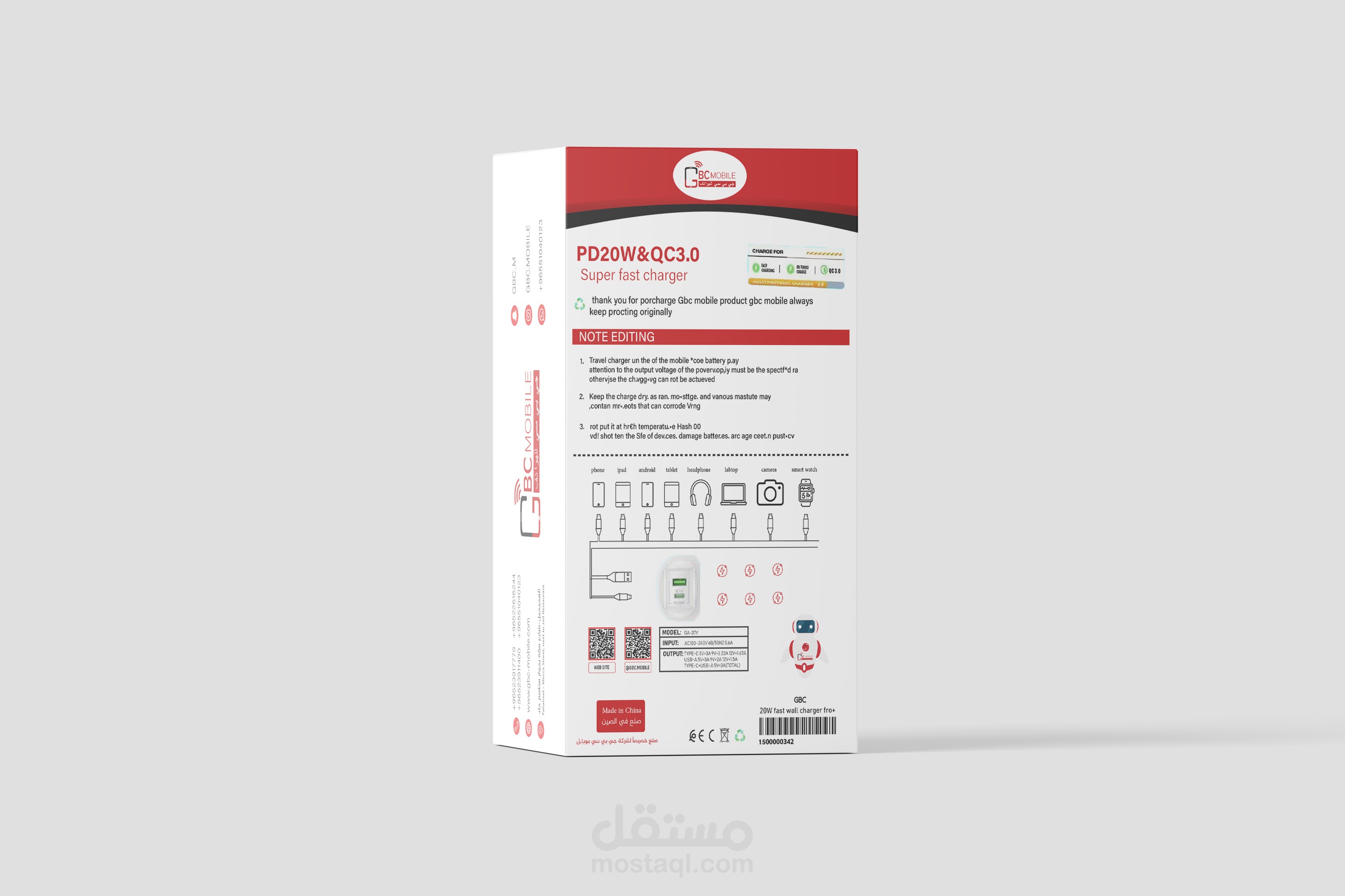 تصميم علبة شاحن لشركة GBC Mobile - الكويت