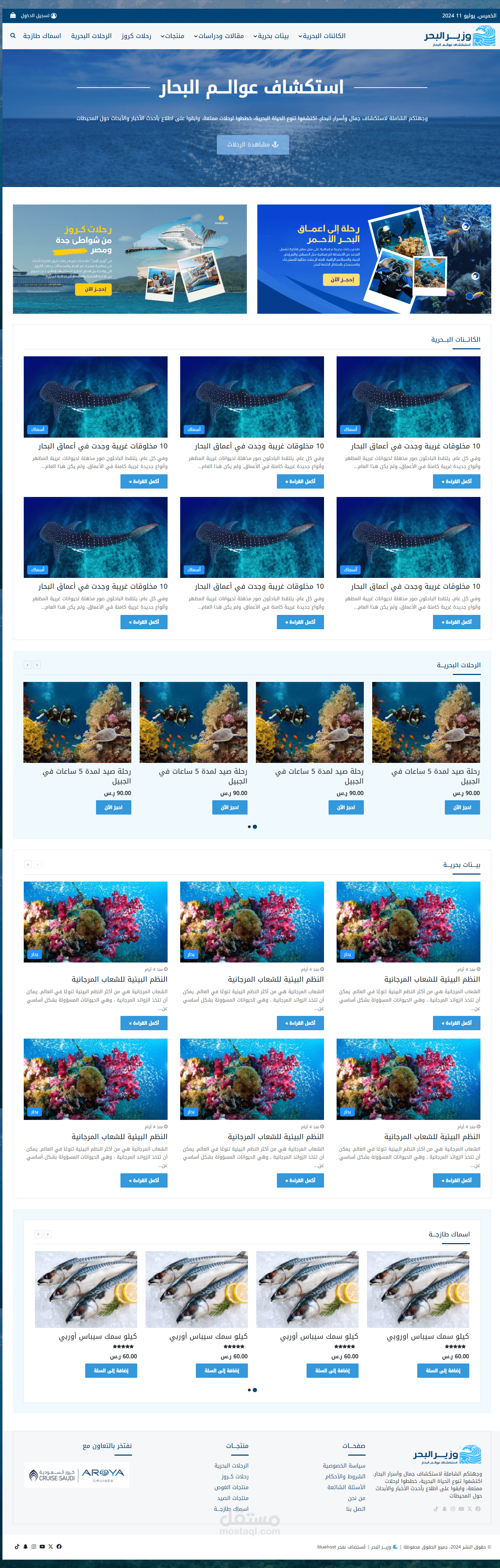 موقع “وزير البحر” تم تصميمه باستخدام منصة ووردبريس لتوفير تجربة متميزة للمستخدمين مع التركيز على الاستكشاف البحري والحياة البحرية. تم استخدام ثيمات مخصصة مستوحاة من ألوان وأجواء البحر، مع دمج صور عالية الجودة للكائنات البحرية والشعاب المرجانية لإضفاء جمال بصري على الموقع.