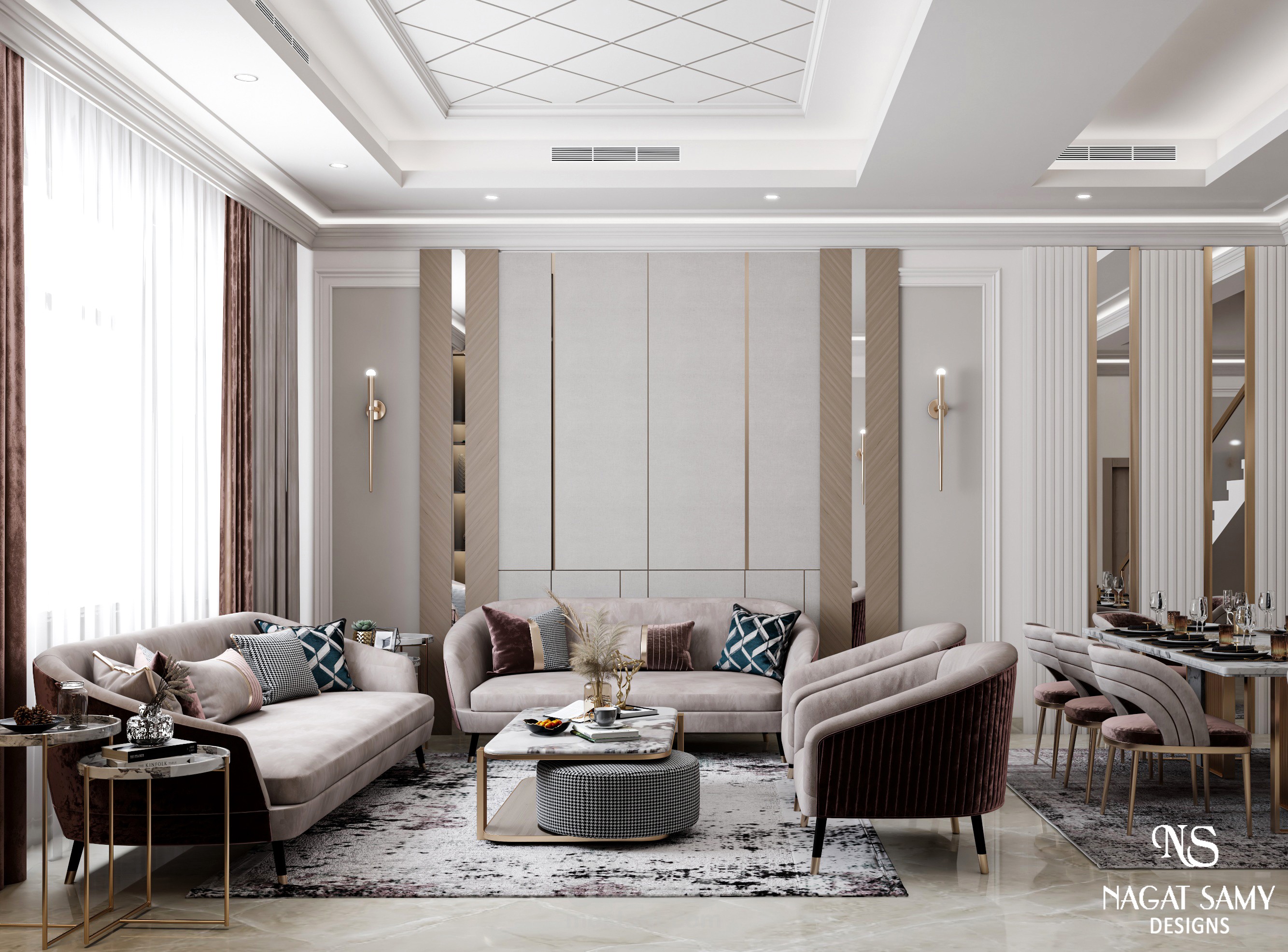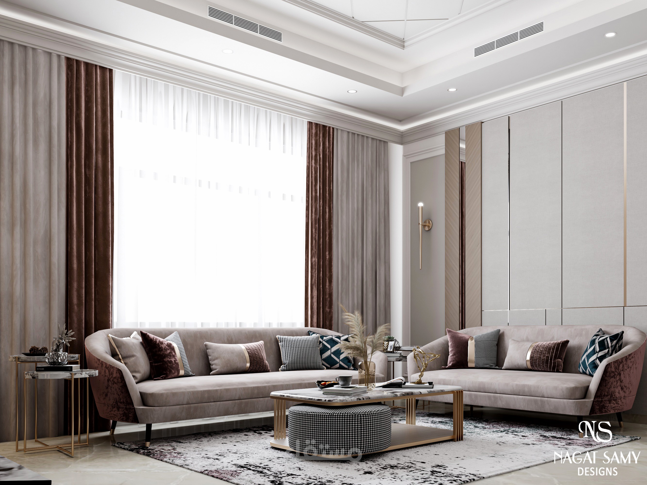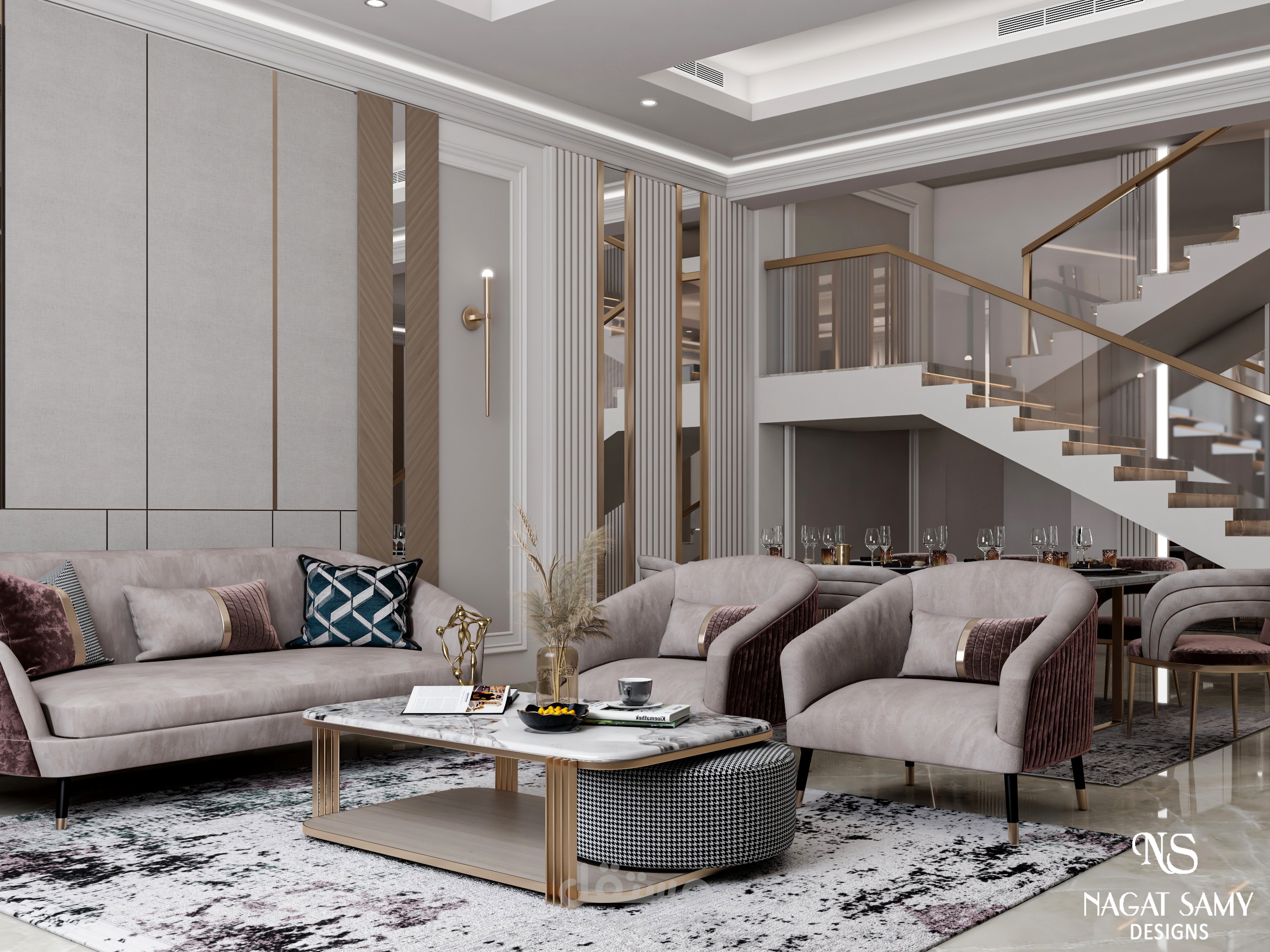 معيشة مودرن بالوان عصرية تميل للبساطه على زوق العميل