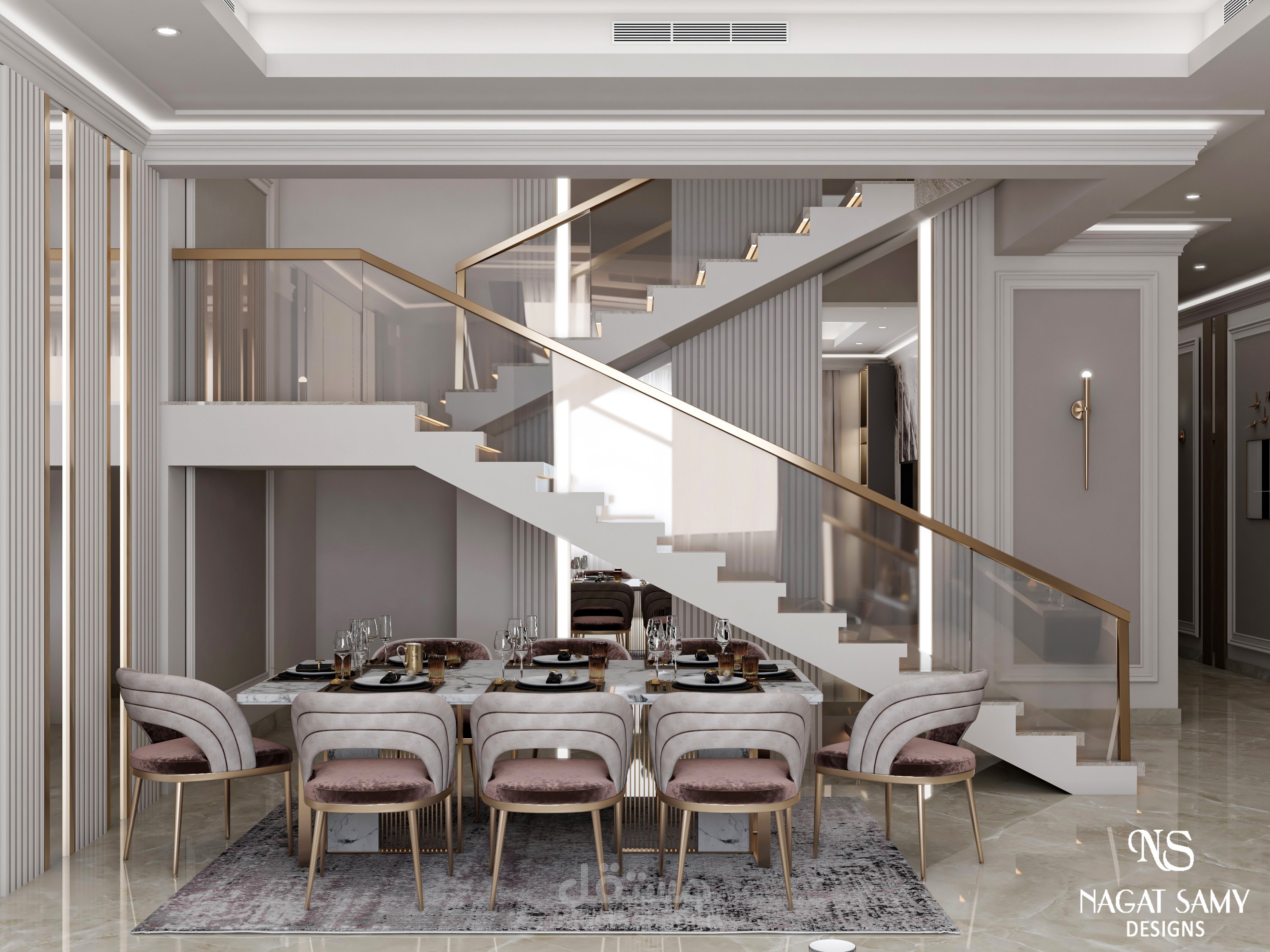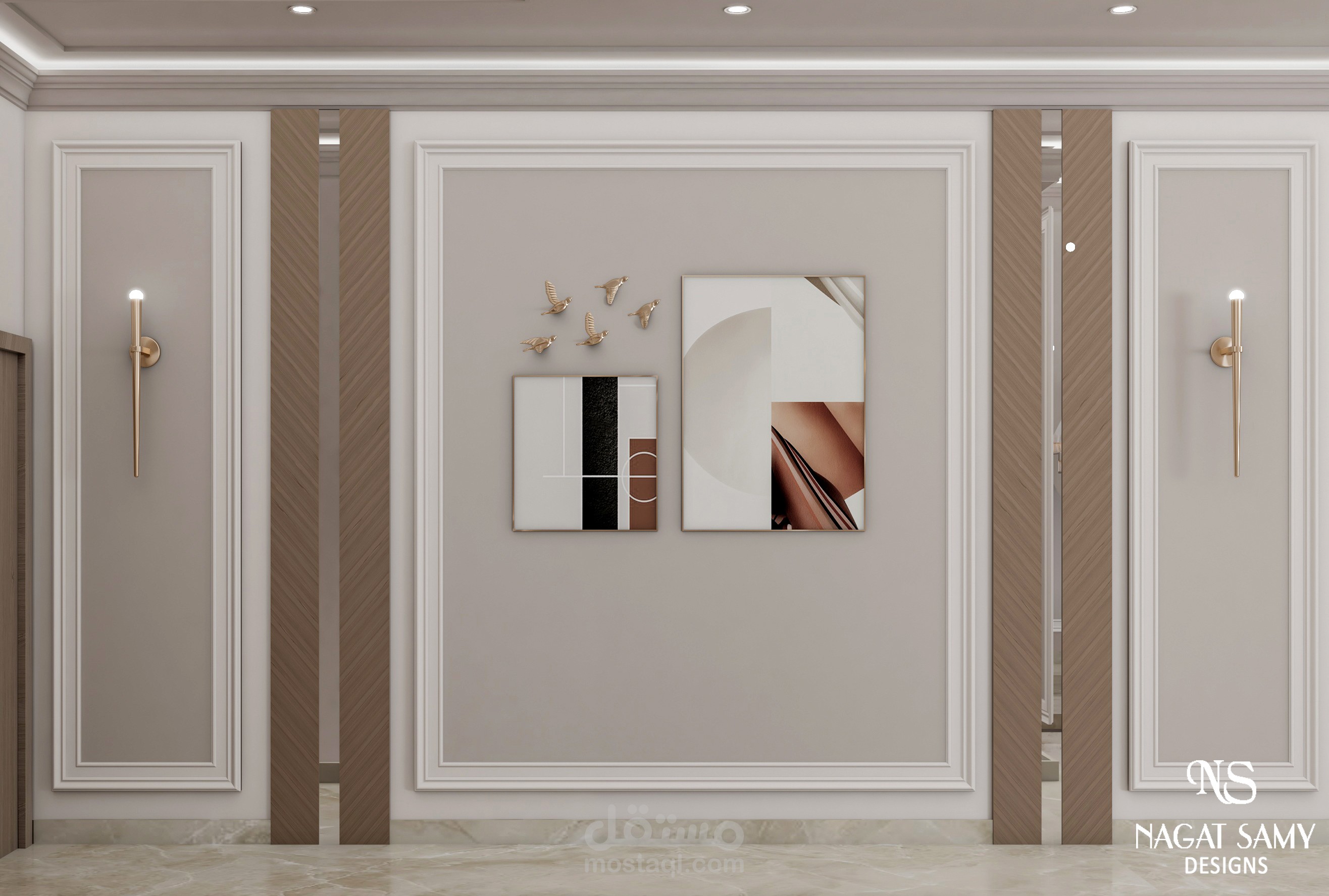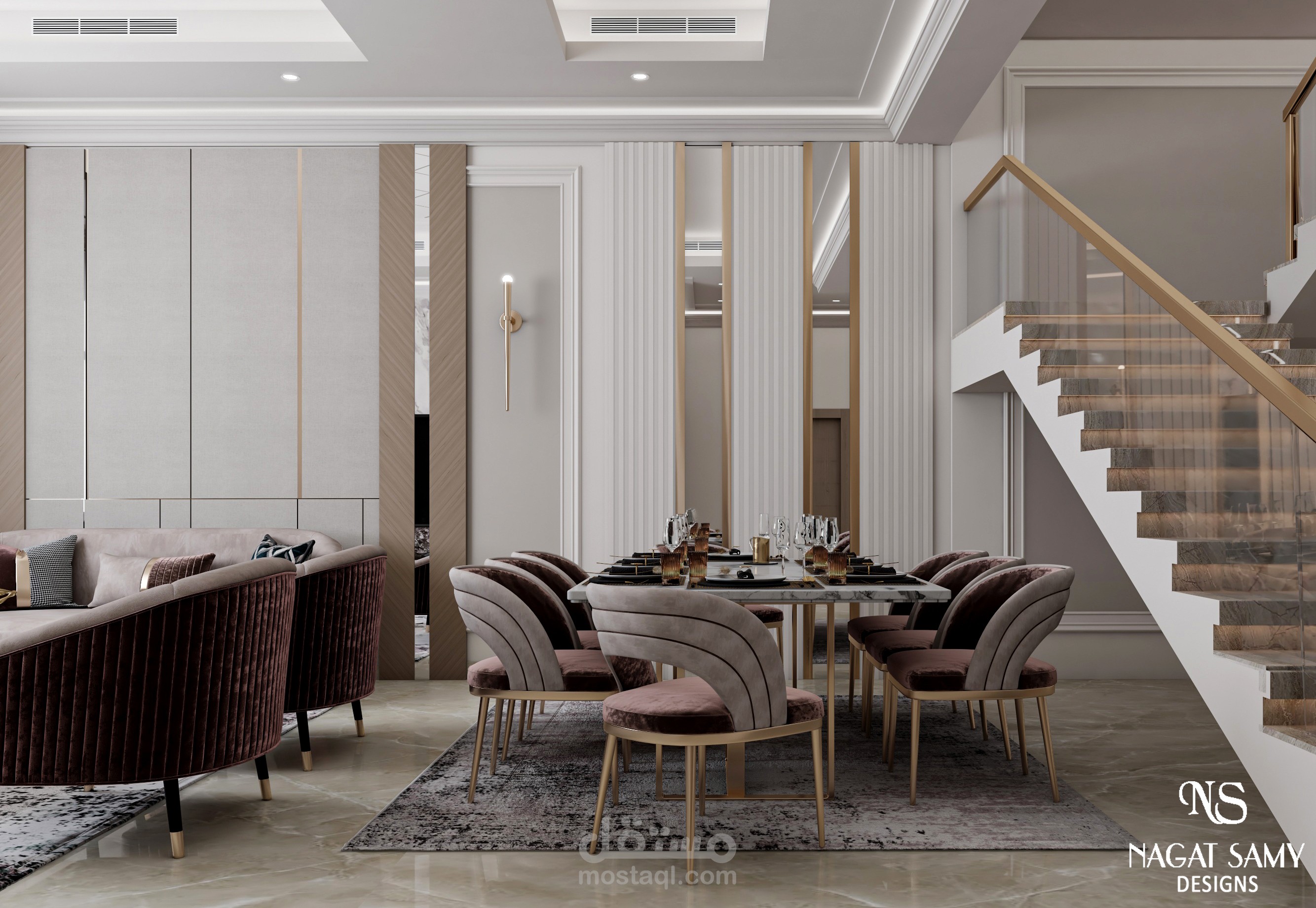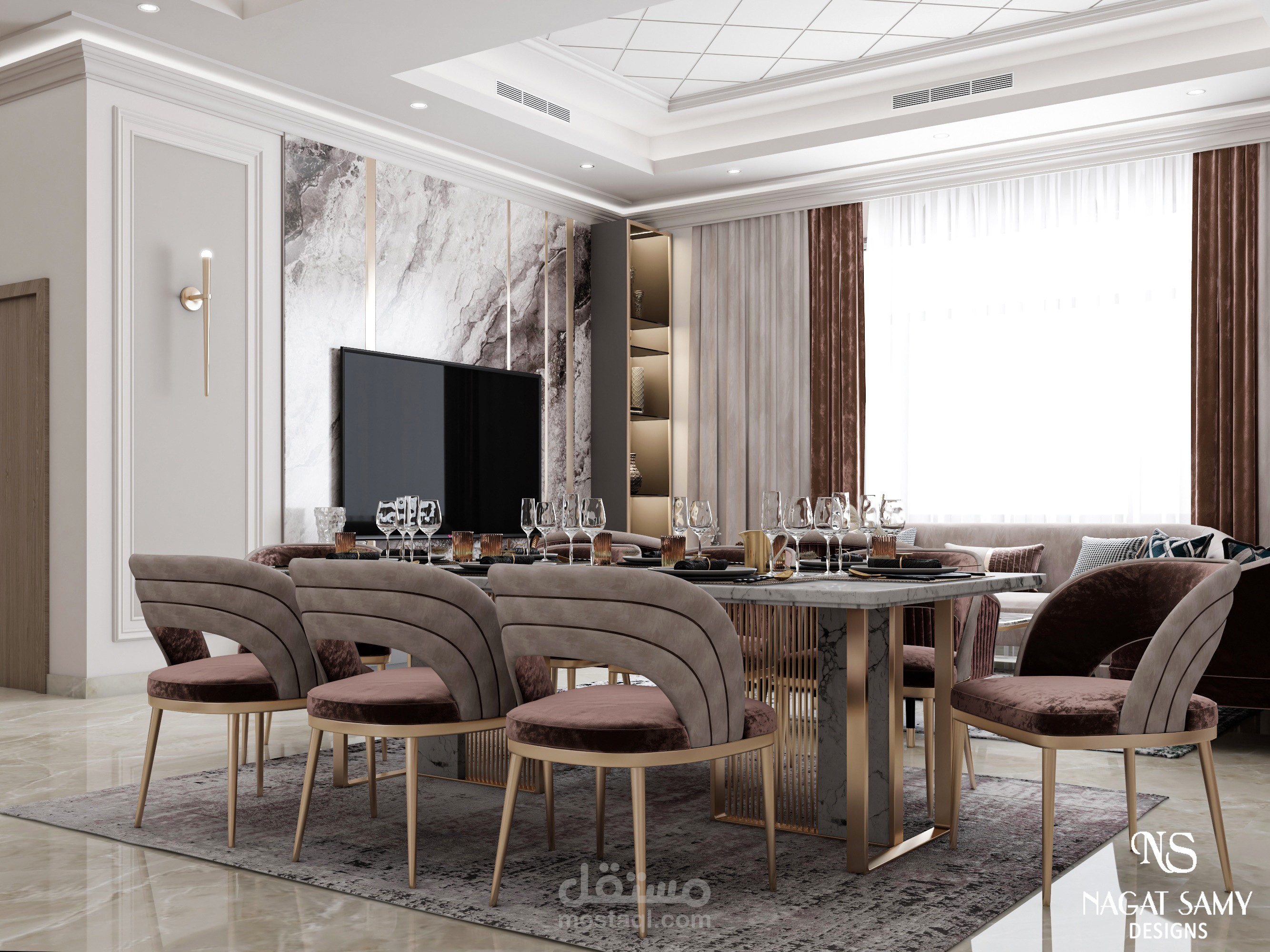 معيشة مودرن بالوان عصرية تميل للبساطه على زوق العميل