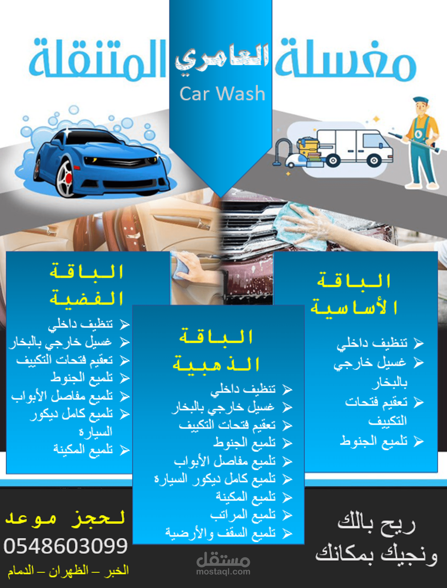 صورة اعلان لمغسلة سيارات متنقله تم العمل عليها خلال يوم