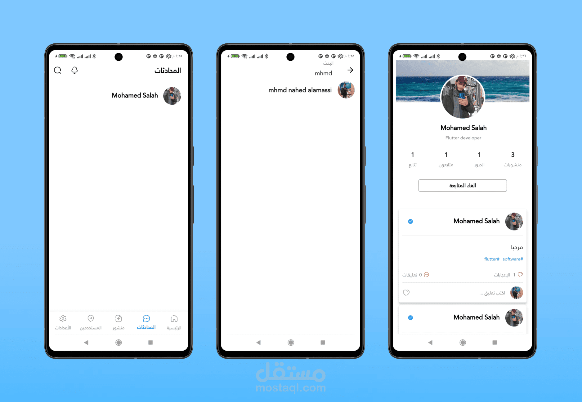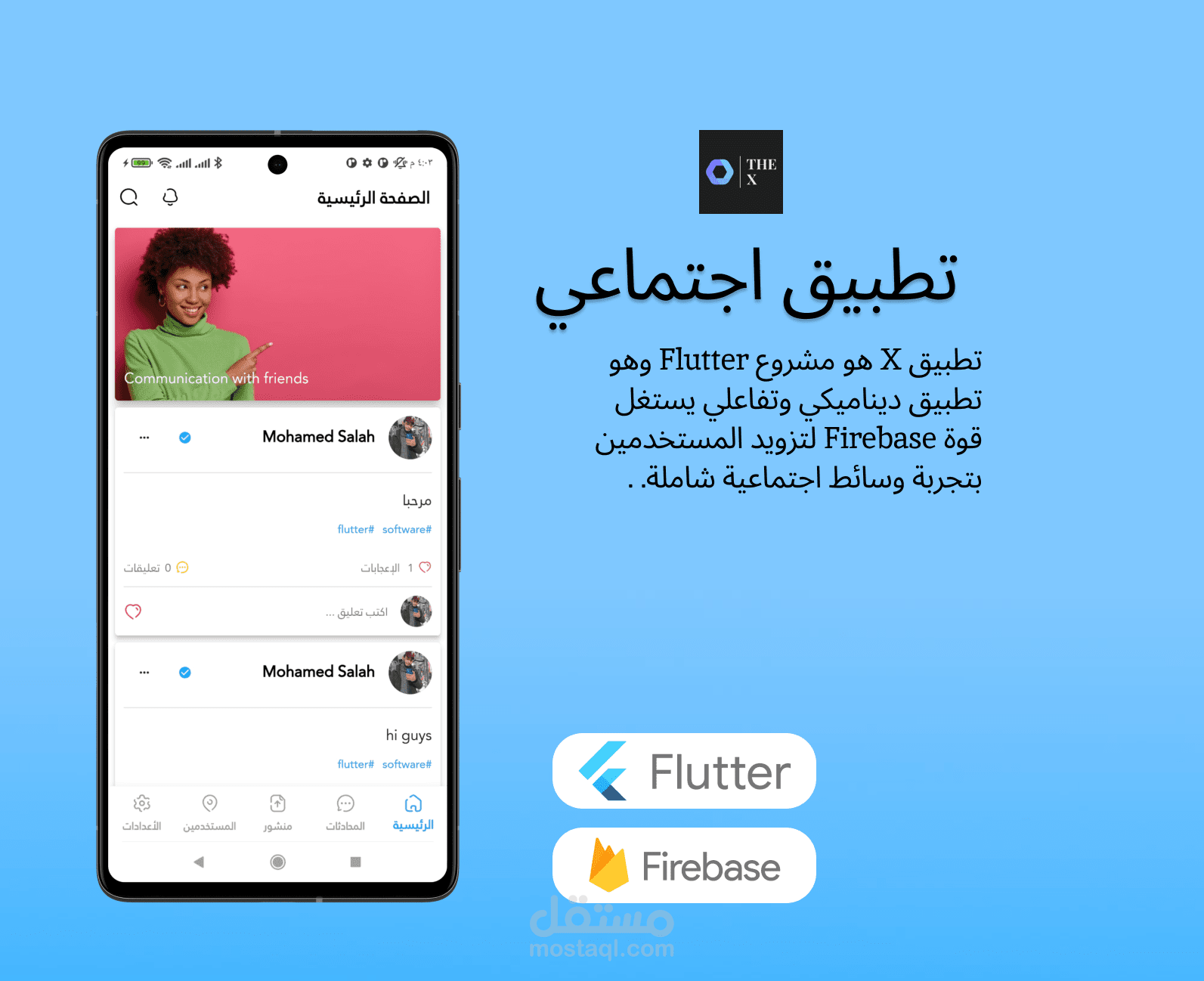 مشروع Flutter لوسائل التواصل االجتماعي مع Firebase.