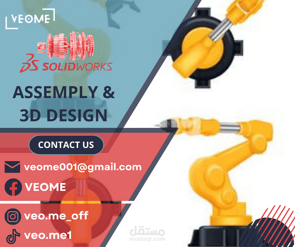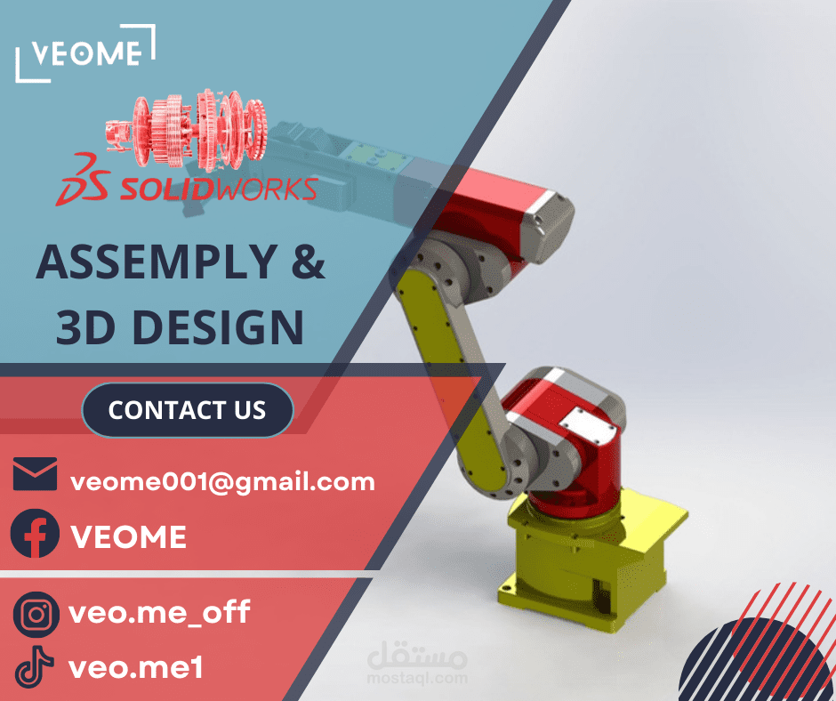 تصميم و رسم صناعي ثلاثي الابعاد ليد روبوت Robot arm drawing \ 3D CAD model باستعمال برنامج Solidworks