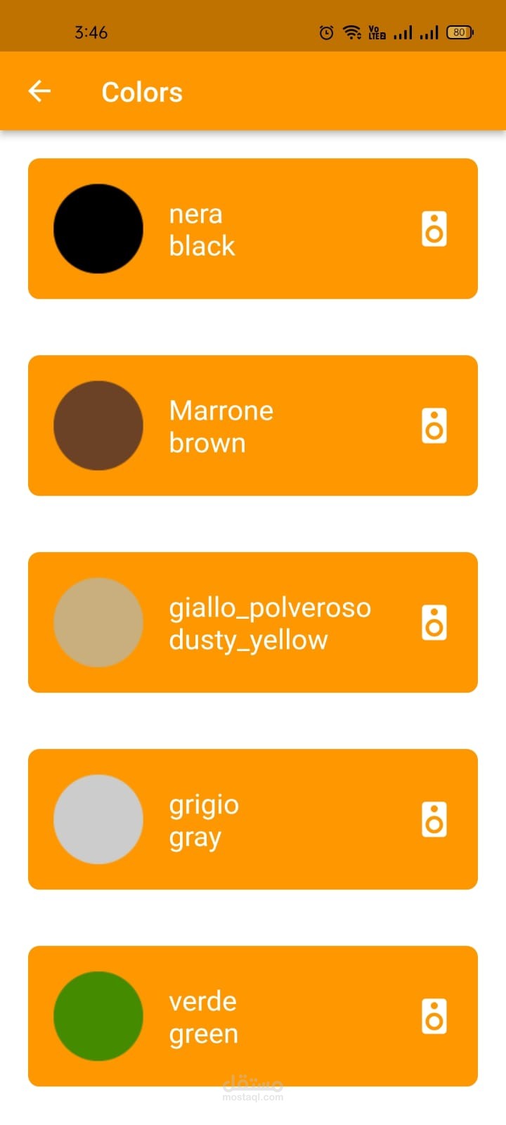 تطيبق جوال لتعليم اللغه الايطاليه و يحتوي علي العديد من العبارات كثيره الاستخدام