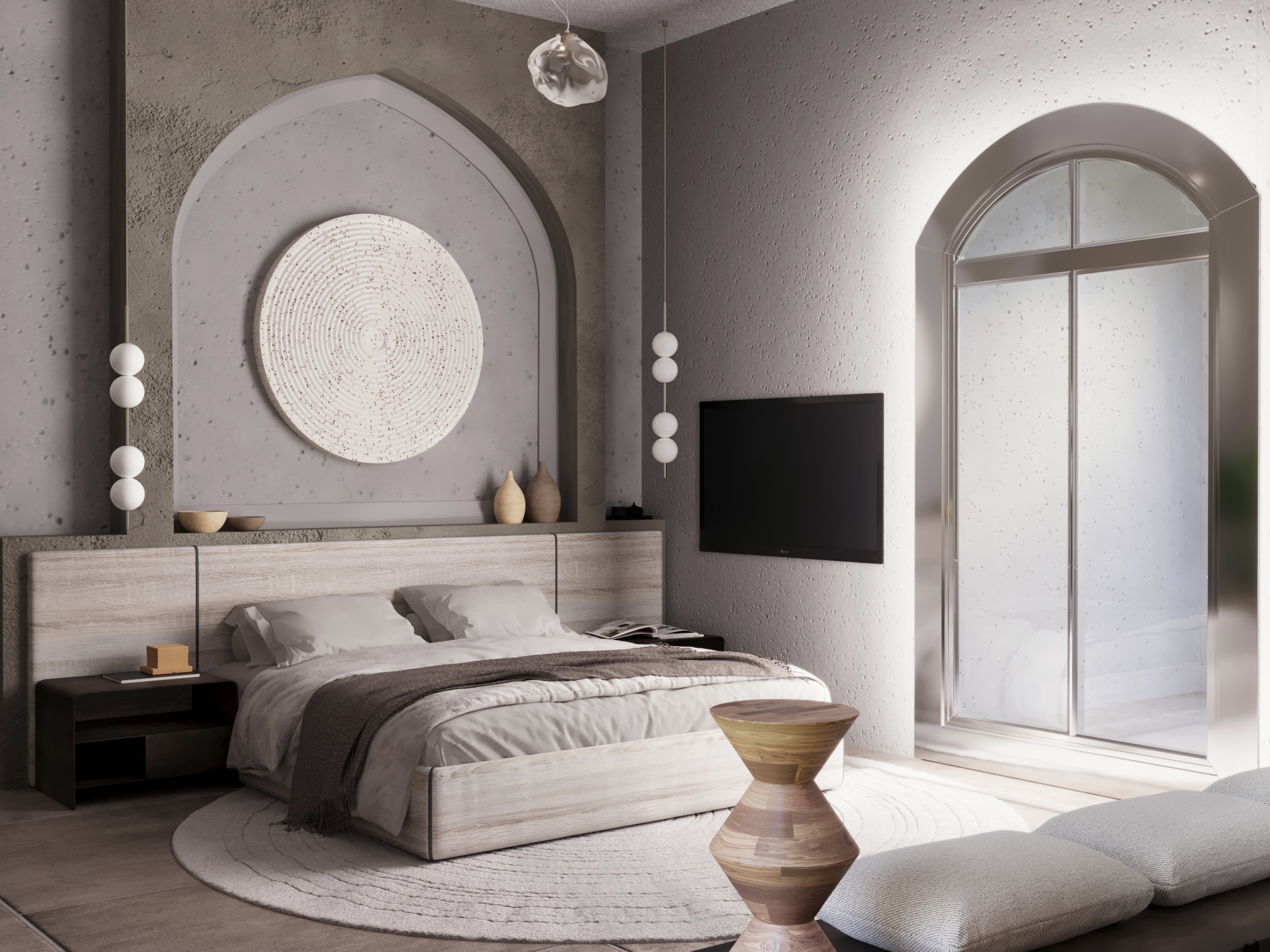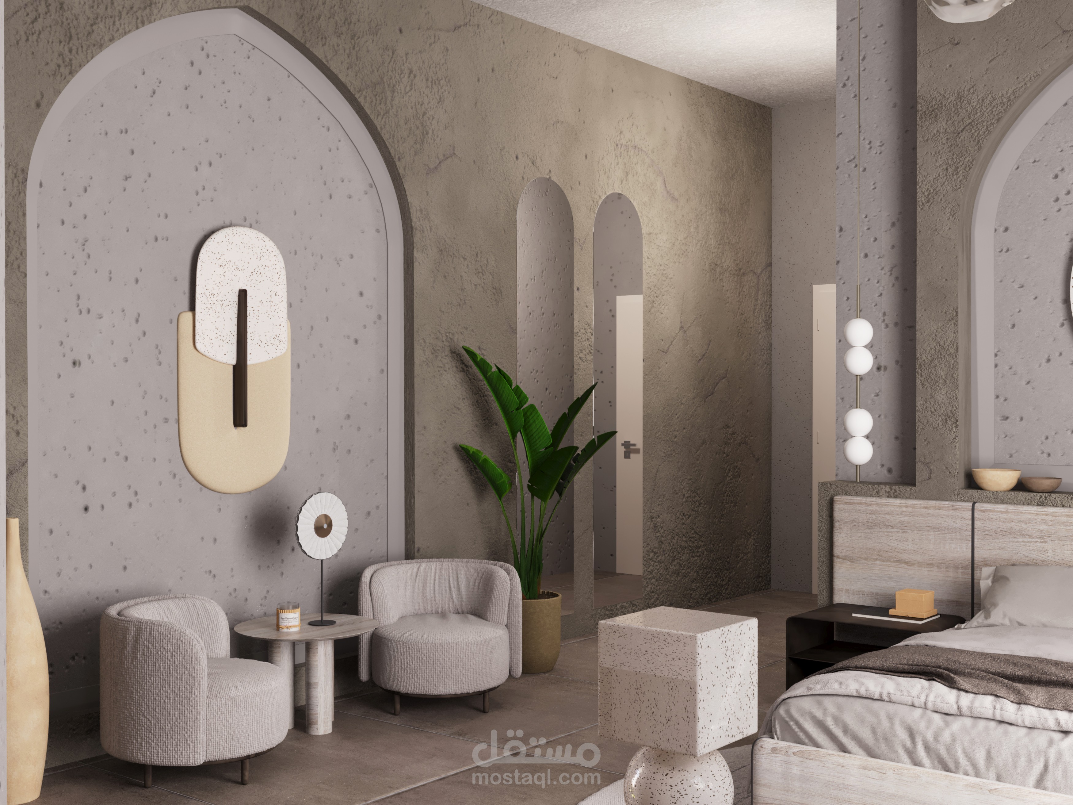 Master bedroom design - a mix of both Traditional Arabic and Japandi Styles