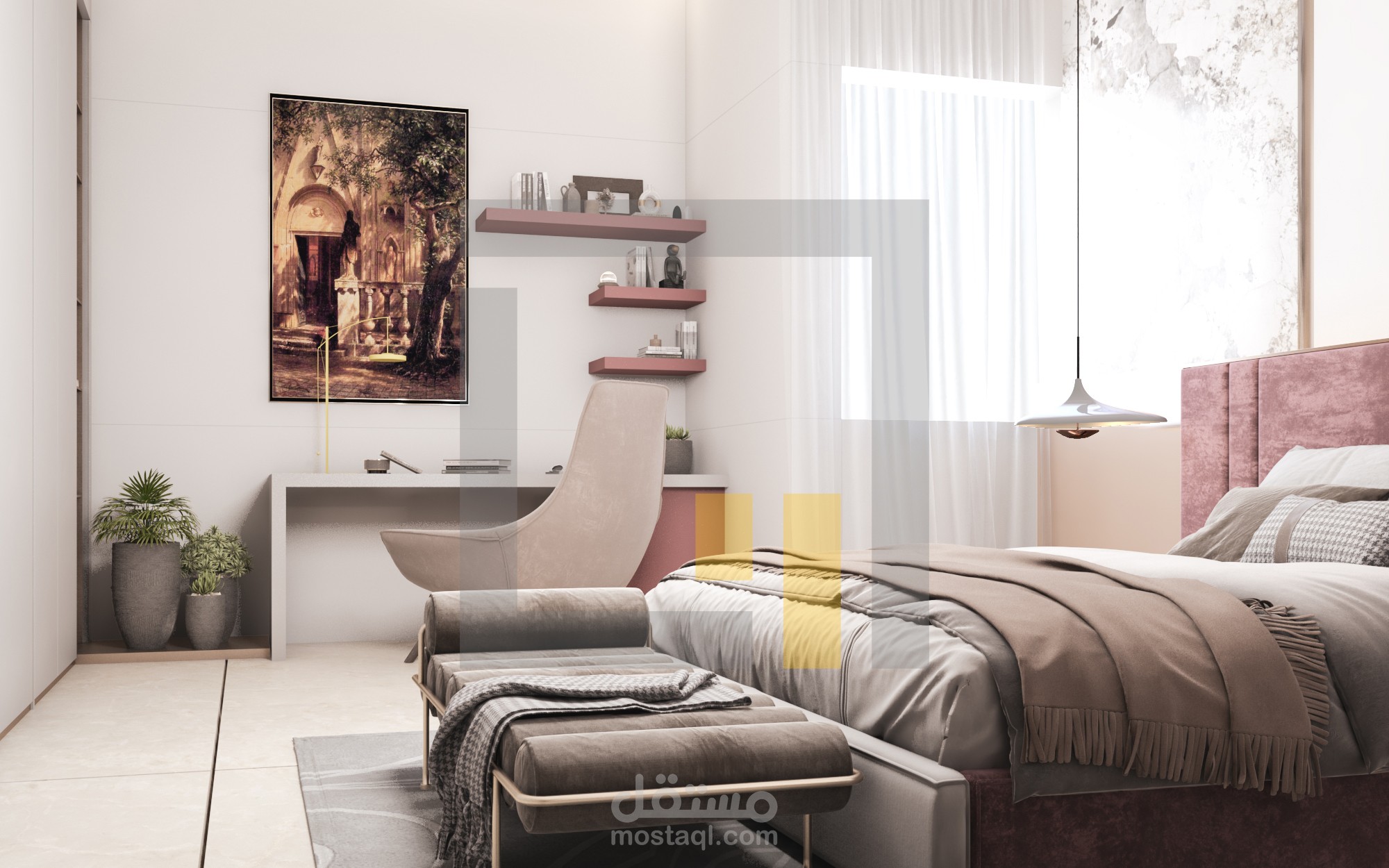 تصميم غرفة نوم لفتاة ضمن فيلا بالسعودية