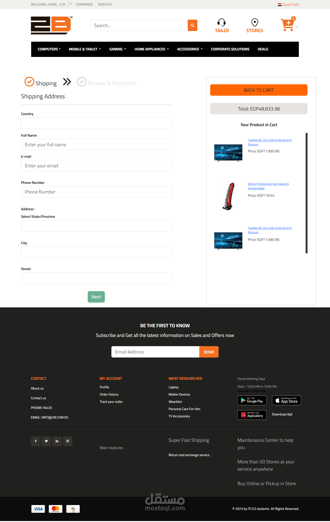 تم عمل موقع الكتروني باسم 2B كفاينل بروجكت بمعهد ITI