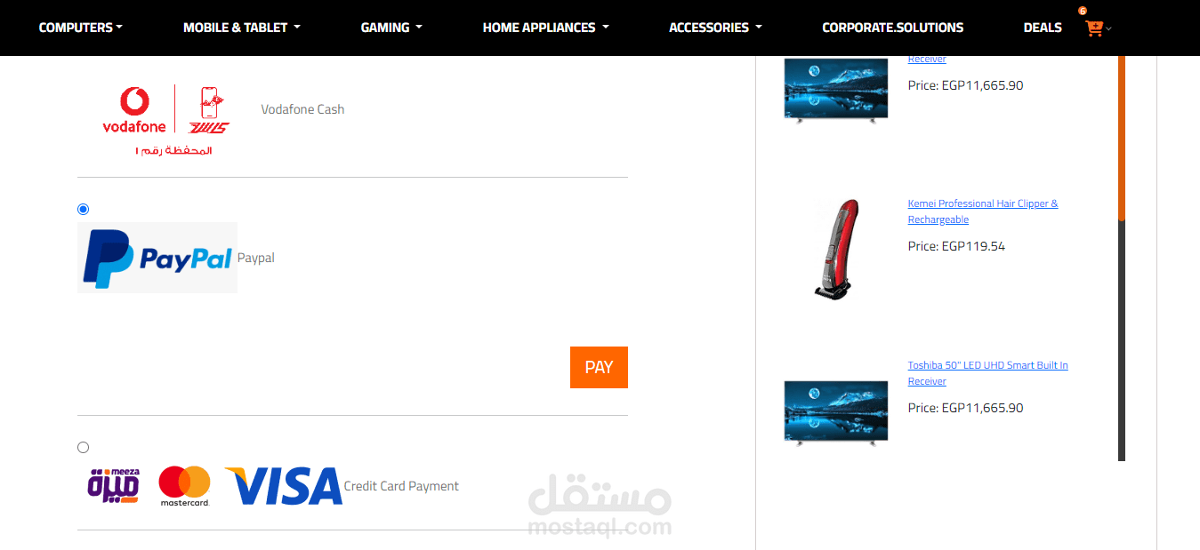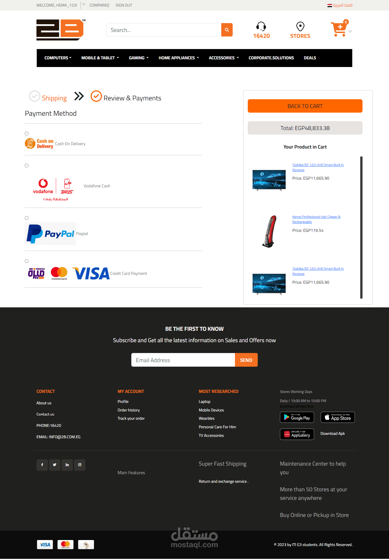 يستطيع فيه المستخدم شراء المنتجات حسب رغبته واختيار طريقة الدفع المناسبة له