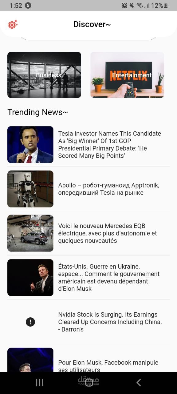 موجز الأخبار المخصص: يمكن للمستخدمين تخصيص موجز الأخبار الخاص بهم عن طريق تحديد فئات الاهتمام المفضلة لديهم، مثل السياسة والتكنولوجيا والرياضة والترفيه والمزيد. يتعلم محرك توصيات التطبيق من تفاعلات المستخدم لتوفير محتوى أكثر صلة بمرور الوقت.