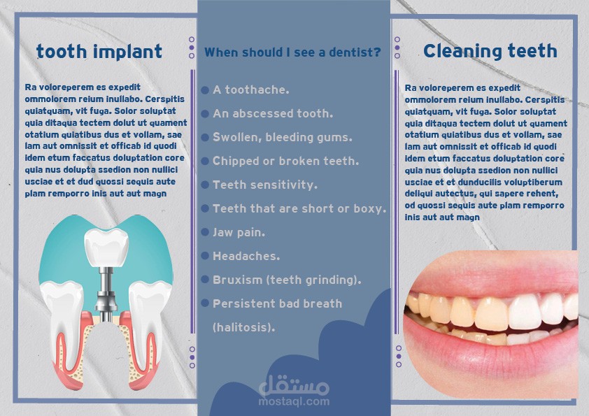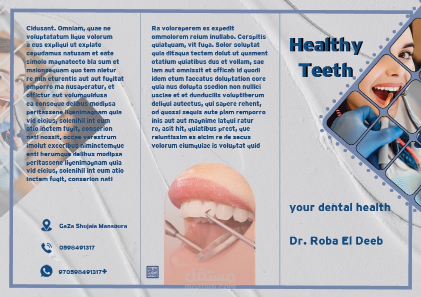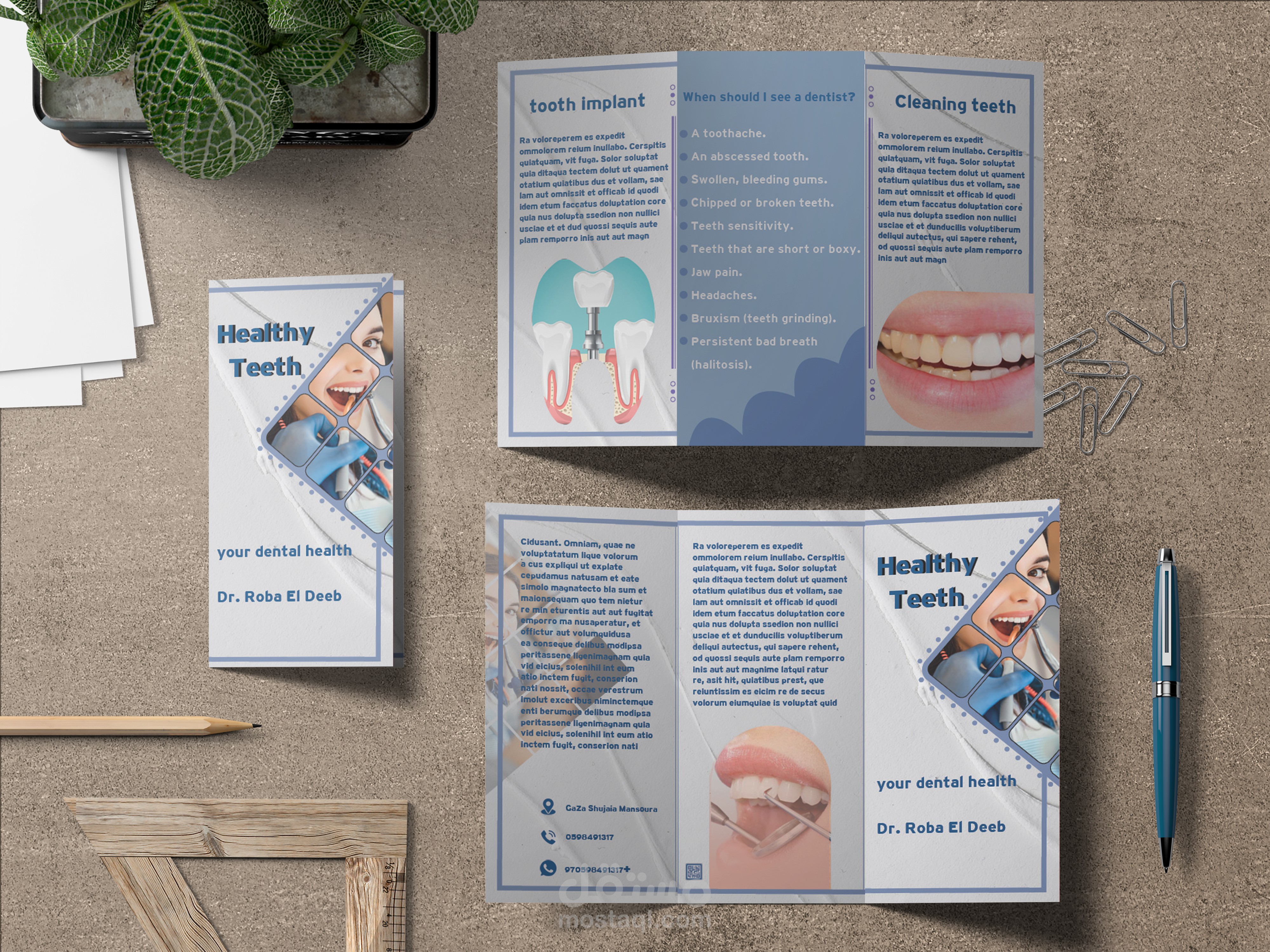 تقدّم لكم مطوية "عيادة الأسنان: ابتسامة صحية وجميلة" تصميمًا استثنائيًا يجمع بين الجمال والرعاية الصحية لضمان ابتسامة تنبض بالثقة والصحة. تأخذك هذه المطوية في جولة ممتعة عبر عالم العناية بالأسنان المتقدمة والخدمات الفريدة التي تقدمها عيادتنا.
