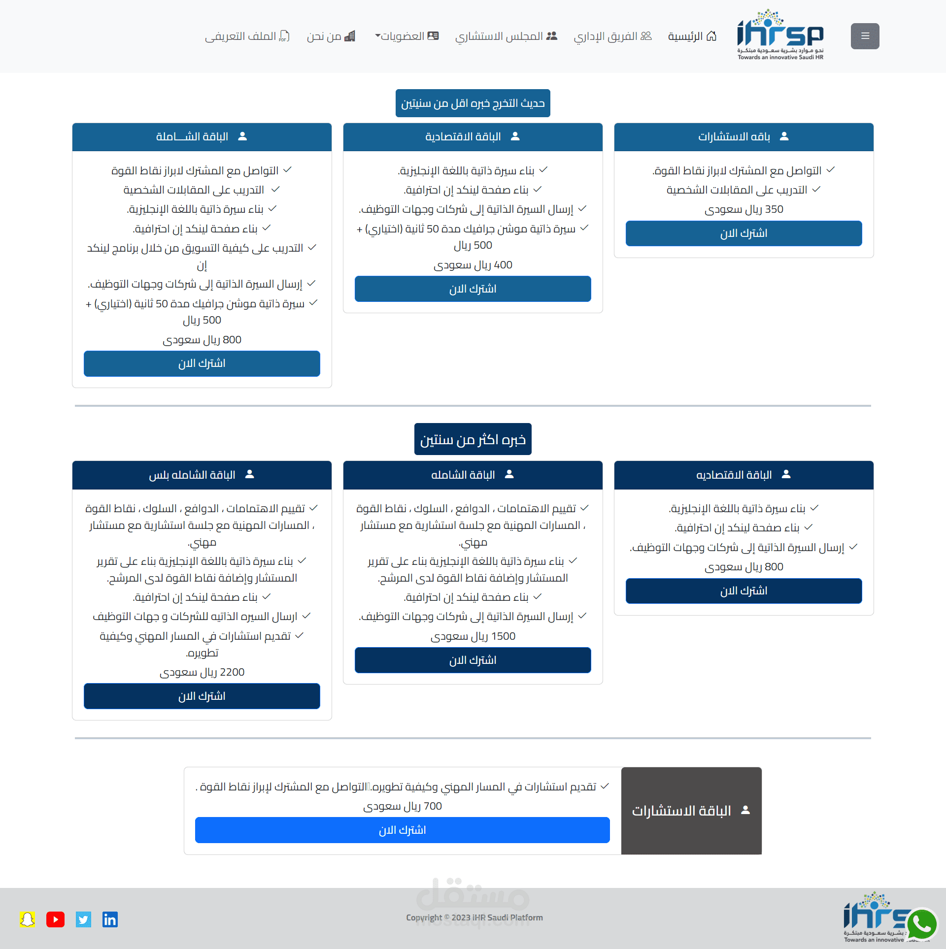 موقع متكامل متعدد الصفحات منقسم الى موقعين تعريفى و اخر لاداره الاشتركات و العضويات و غيره.