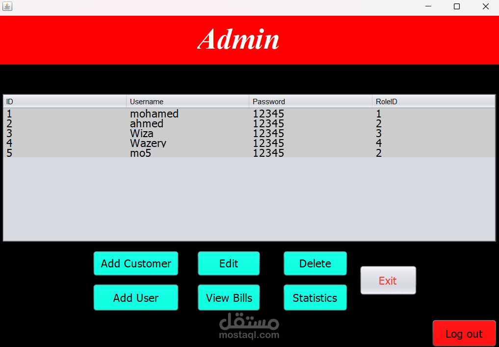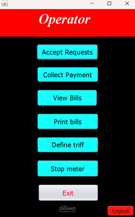 Electricity Billing System that make customers pay bills remotely. There are 4 Modules each one with different role .(Old Customer-New Customer-Operator-Admin)