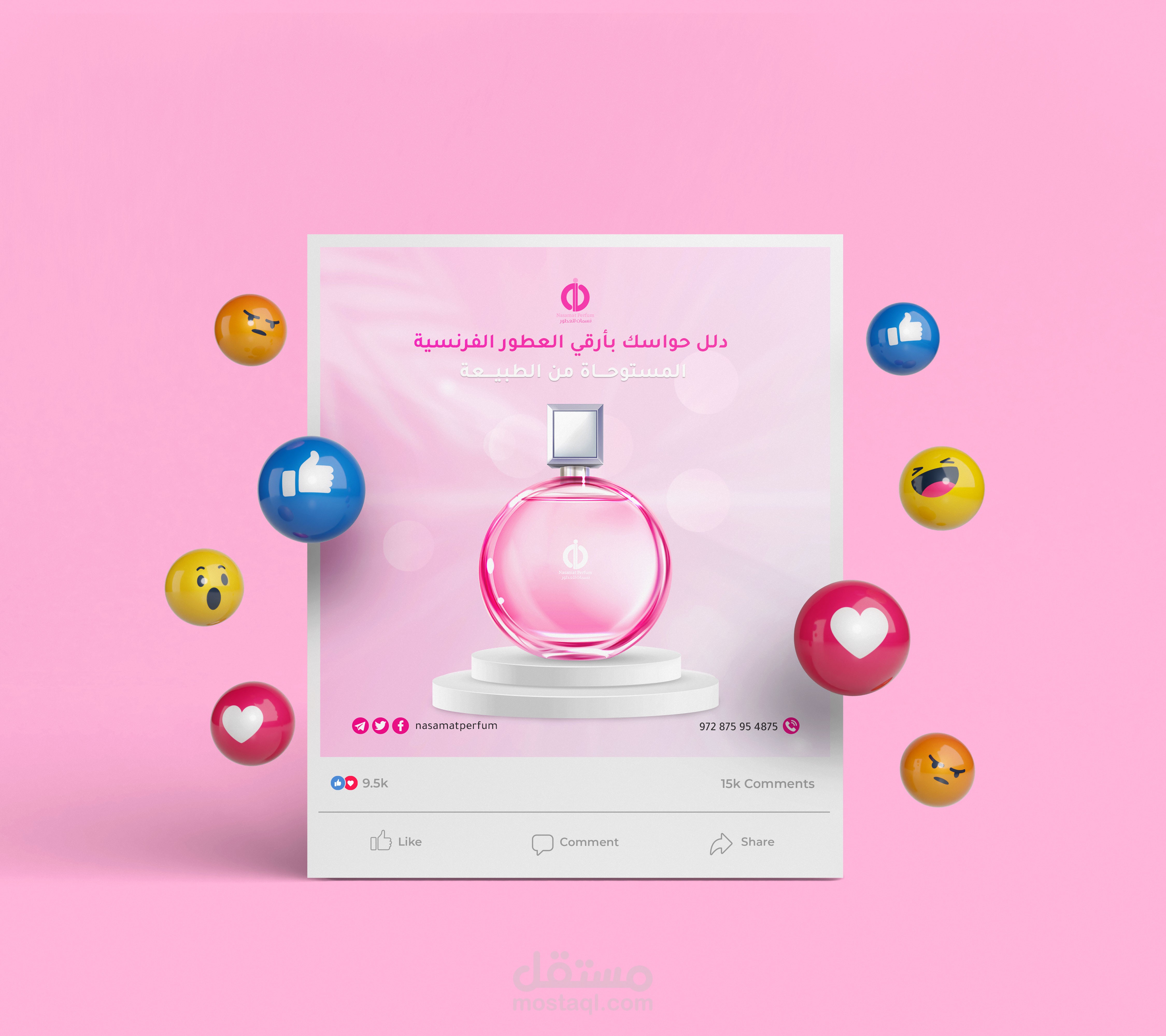 تصاميم سوشيال ميديا لصالح متجر نسمات للعطور