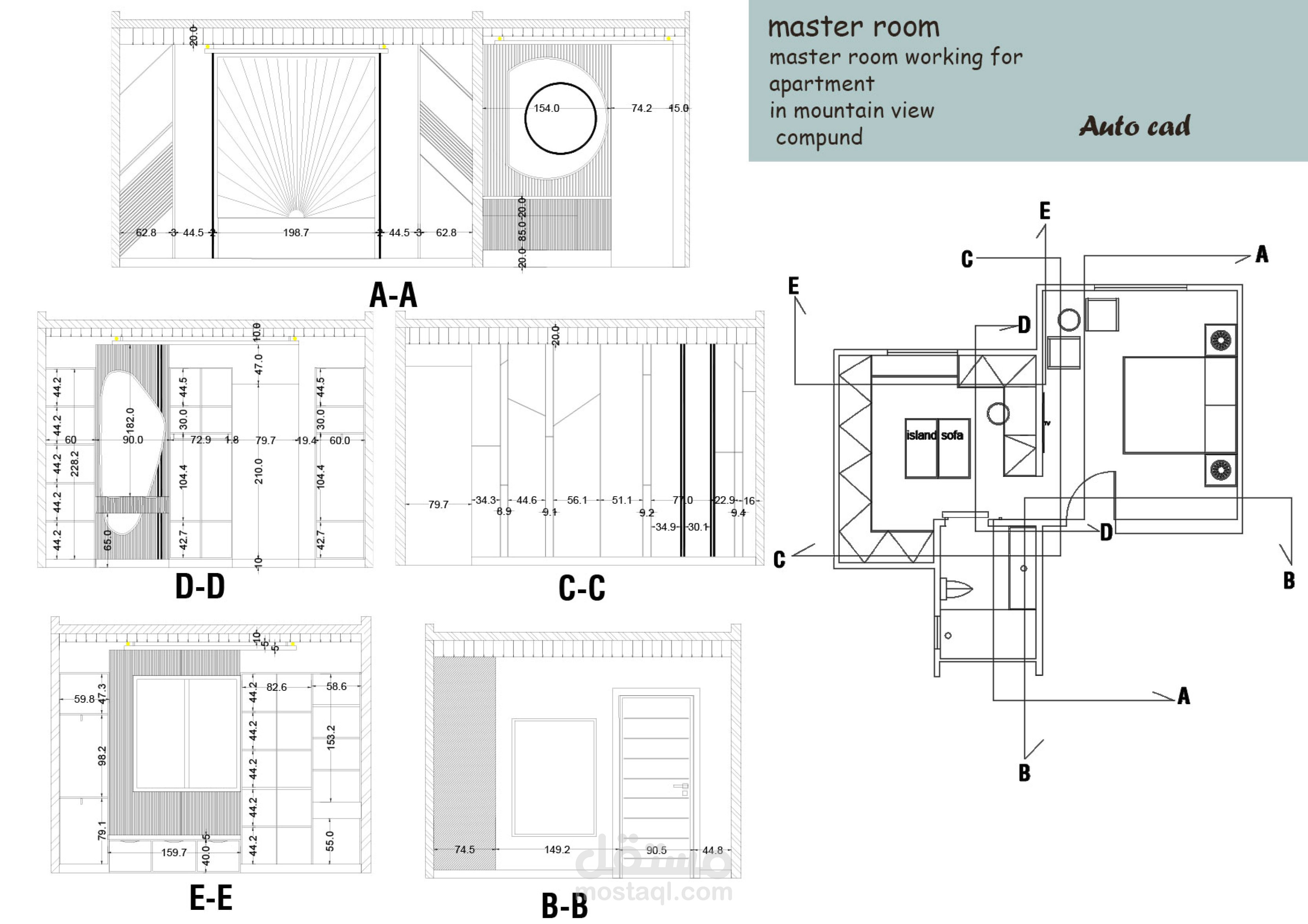 رسم تنفيذي للتصميمات وتوضيح الخامات المستخدمة والمقاسات المطلوبة لتنفيذ التصميم بشكل دقيق...