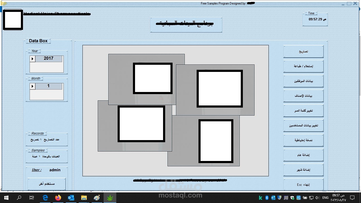 تم إستخدام برنامج VB6 مع قواعد البيانات اكسس لعمل برنامج لصرف تصاريح عينات مجانية للعاملين يشمل قاعدة بيانات العاملين بالاكواد وكذلك الاصناف المطلوب صرفها