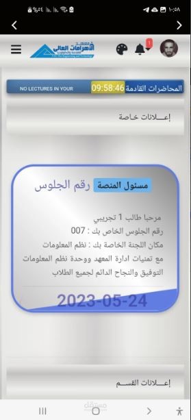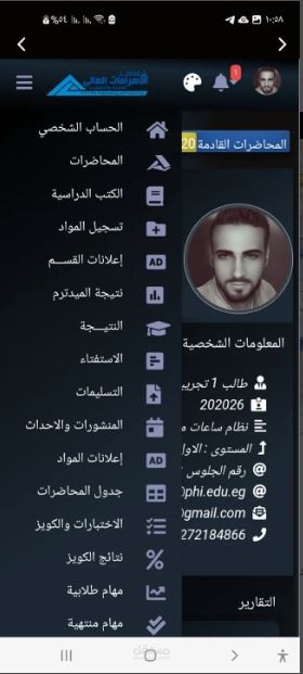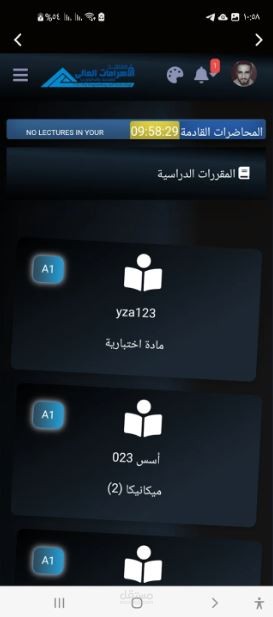 ، حيث يساعد التطبيق في معرفة الطالب بياناته الموجودة في النظام التعليمي المتطور وداست المواد و الحضور ويساعد الدكنور في رفع الملفات (مراجع ، كتب ، جداول المحاضرات )