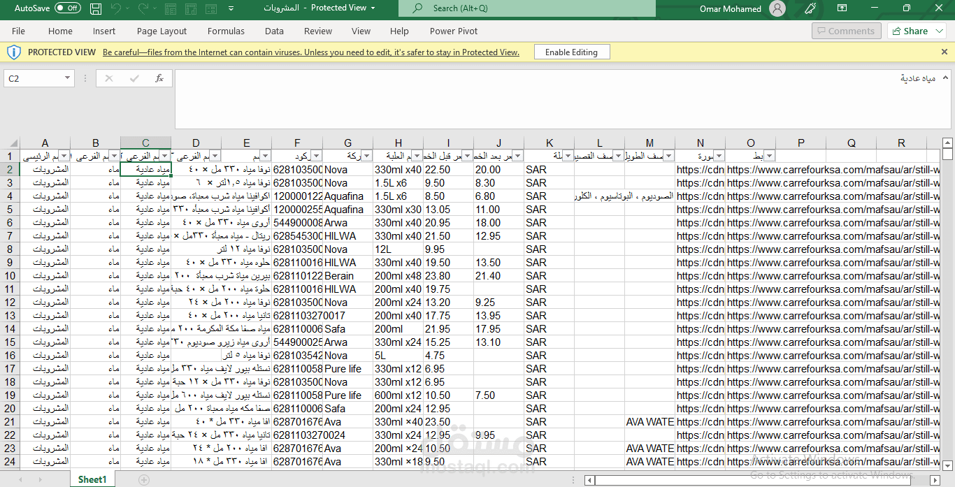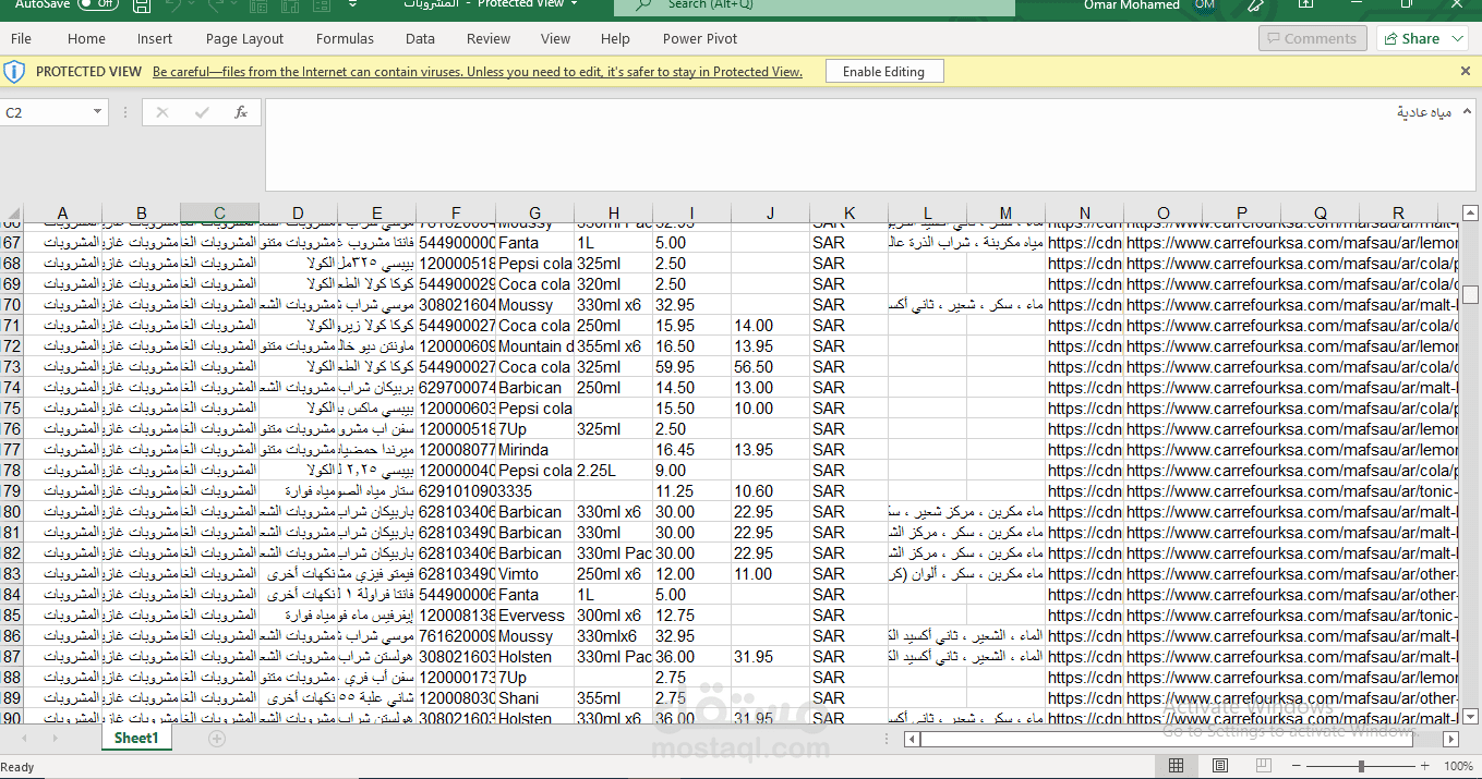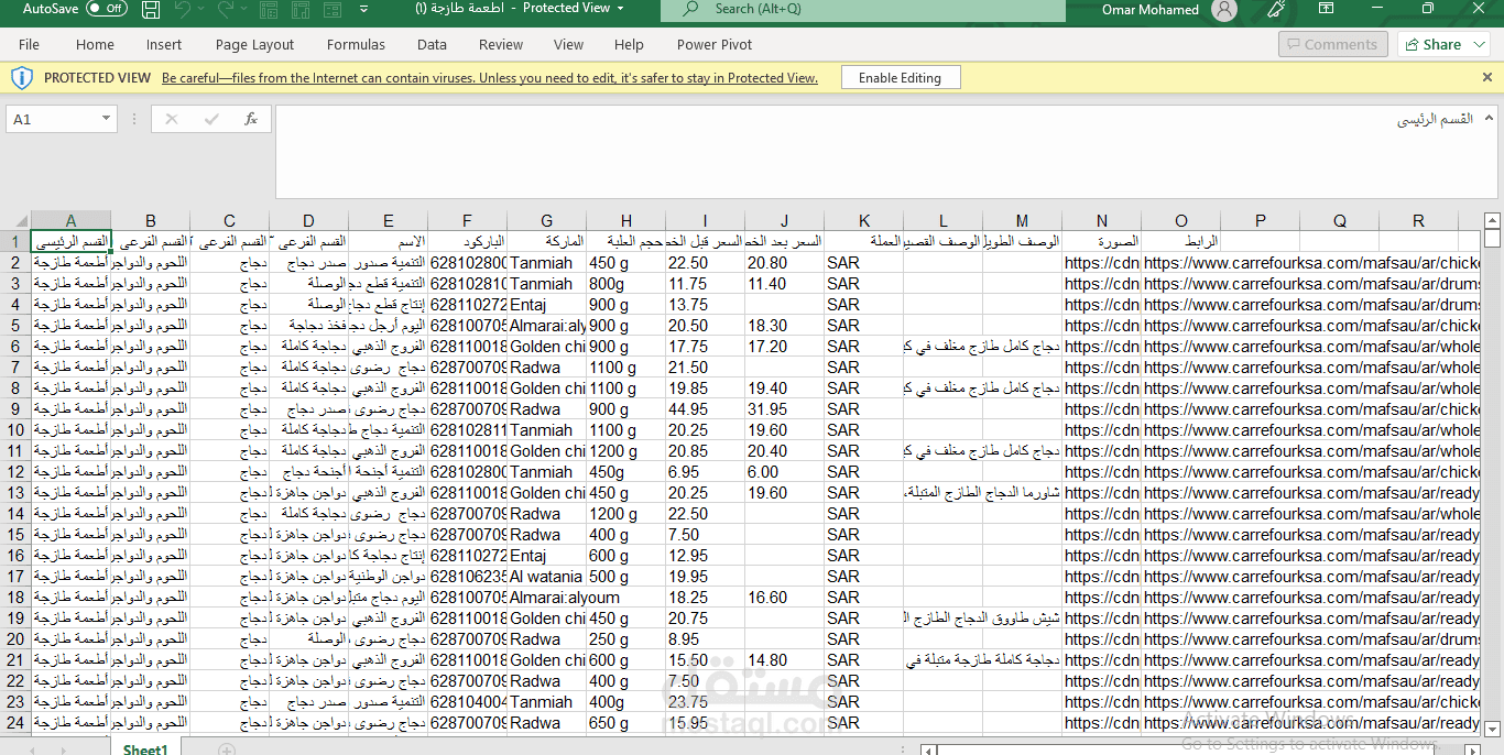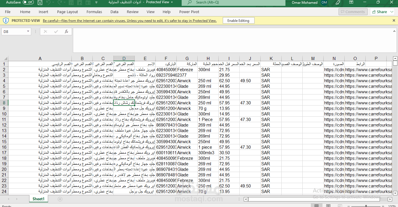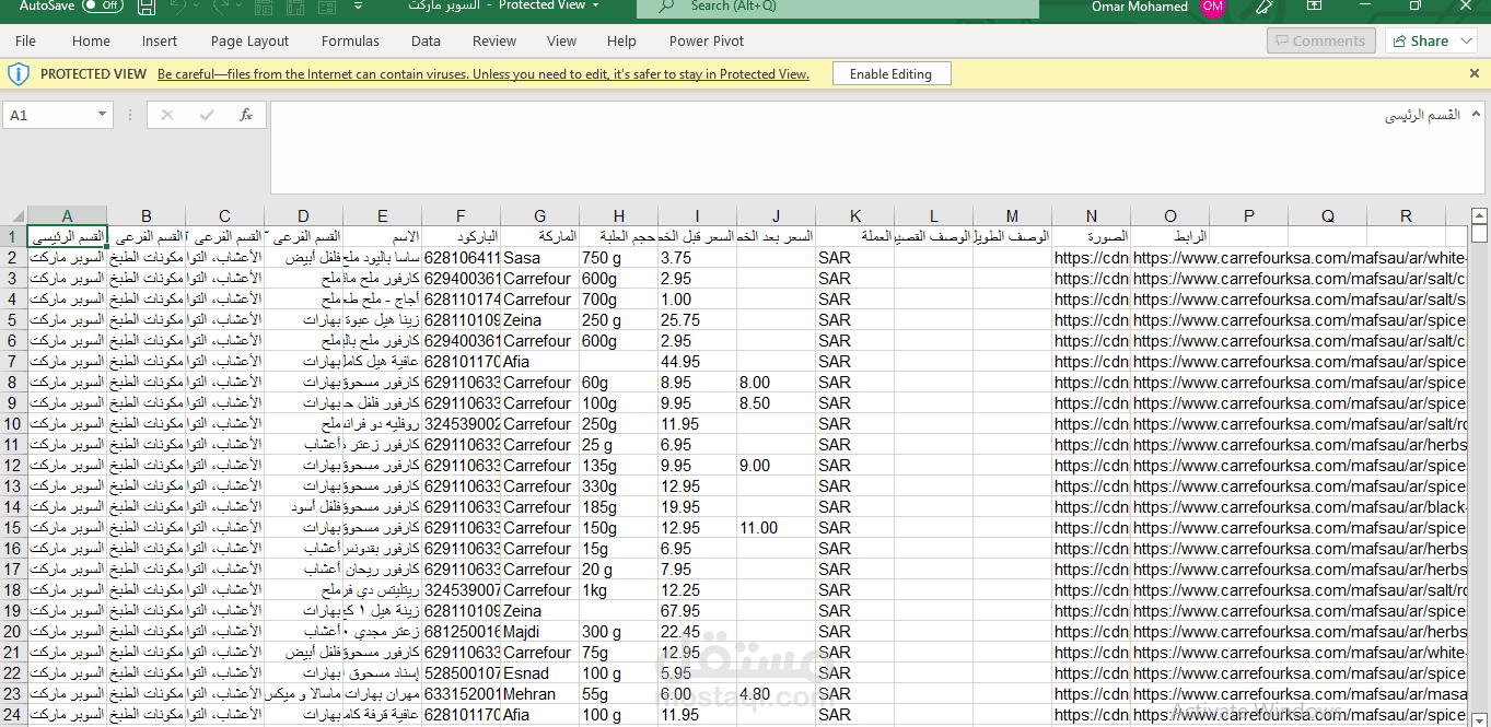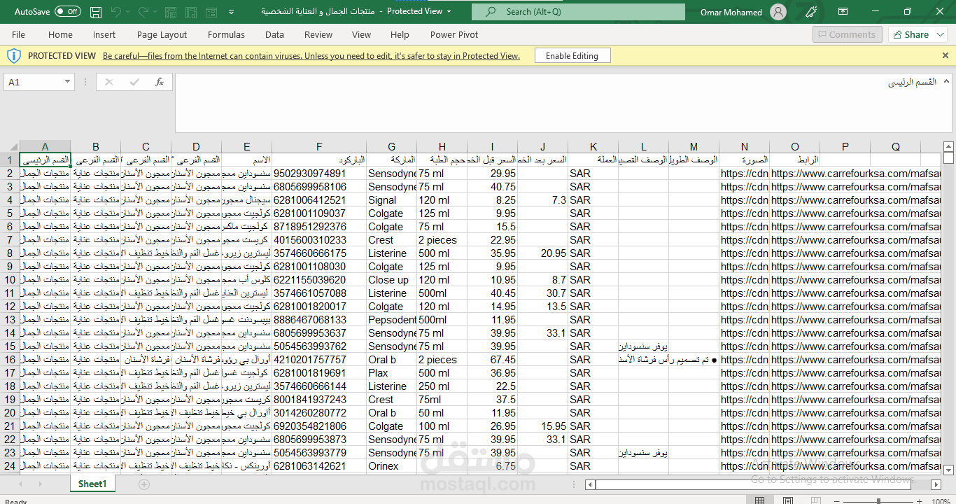 لدي بيانات المنتجات السعودية بالاقسام التالية