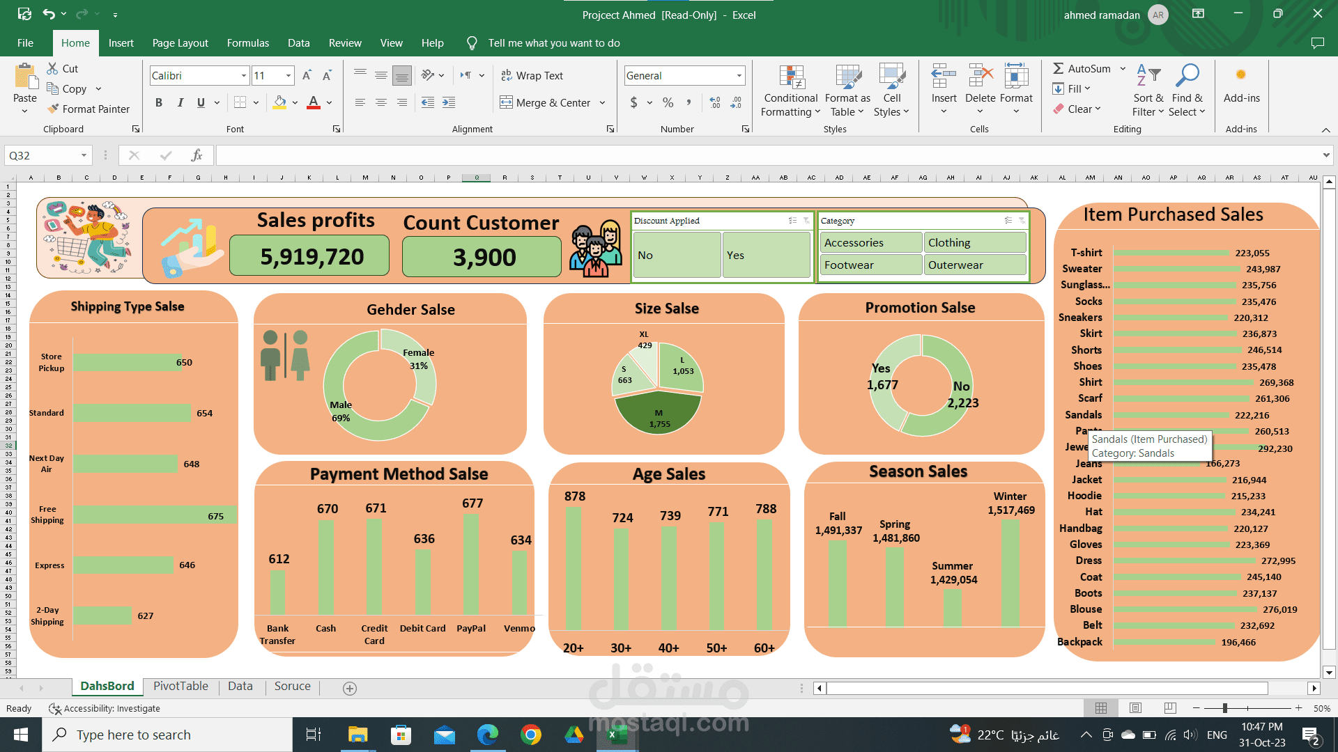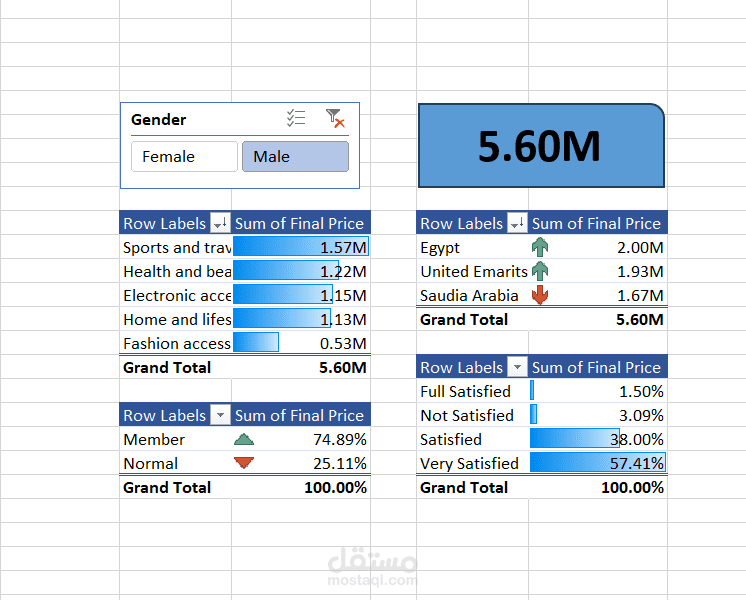 اقوم بعمل تحليل بيانات كاملة عن طريق Excel. Power BI .