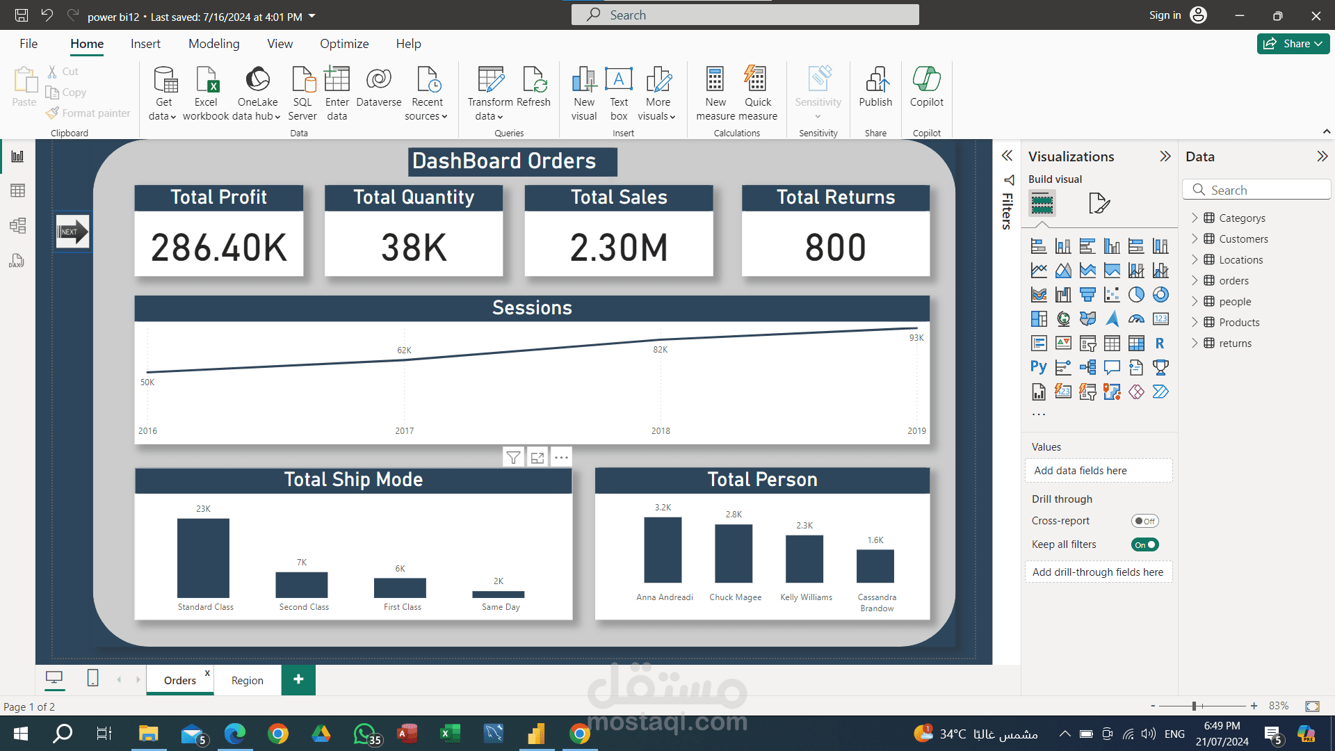 -تصميم لوحة تفاعلية(Dashboards) عن طريق Power BI