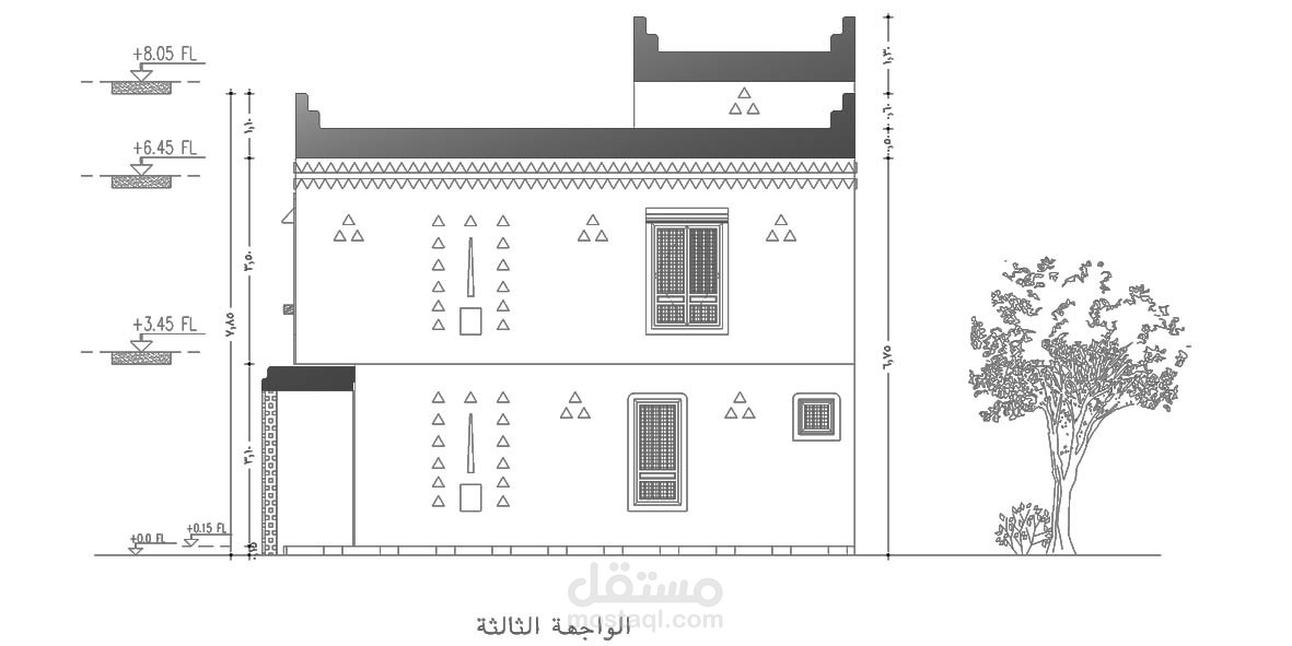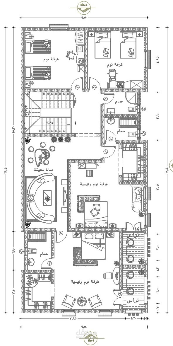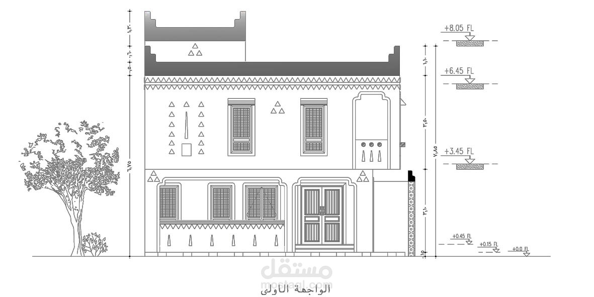 تصميم مخطط معماري لفيلا علي طراز العمارة النجدية مكون من :