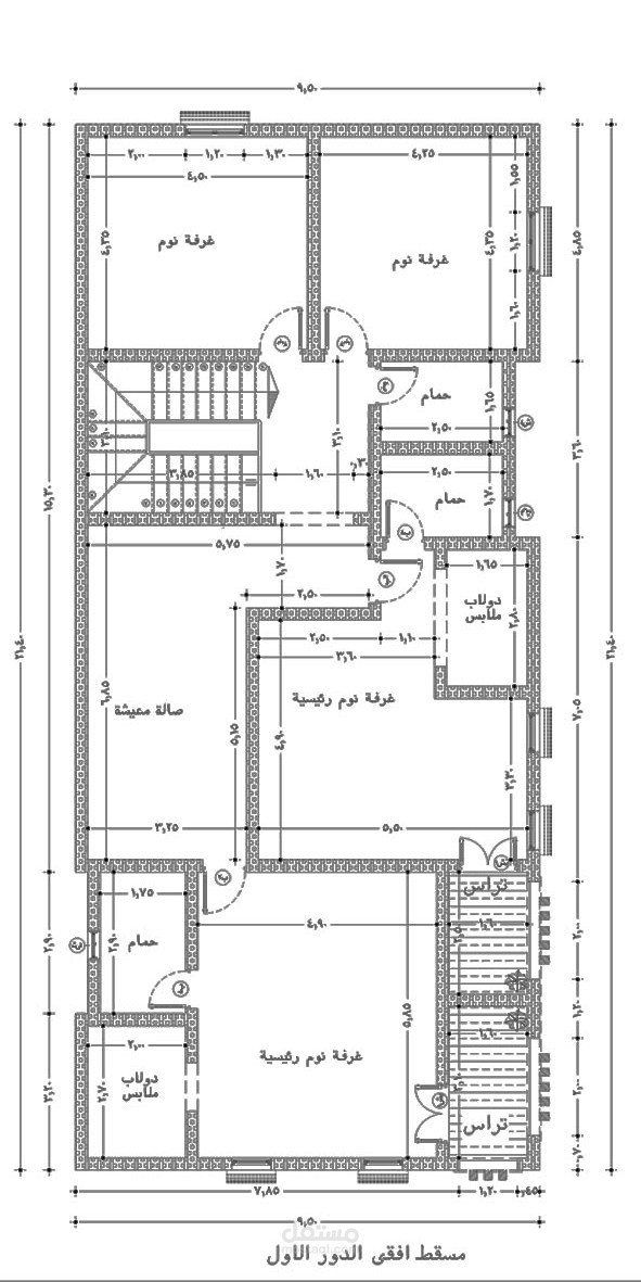 - مسقط أفقي للدور للروف بالمقاسات
