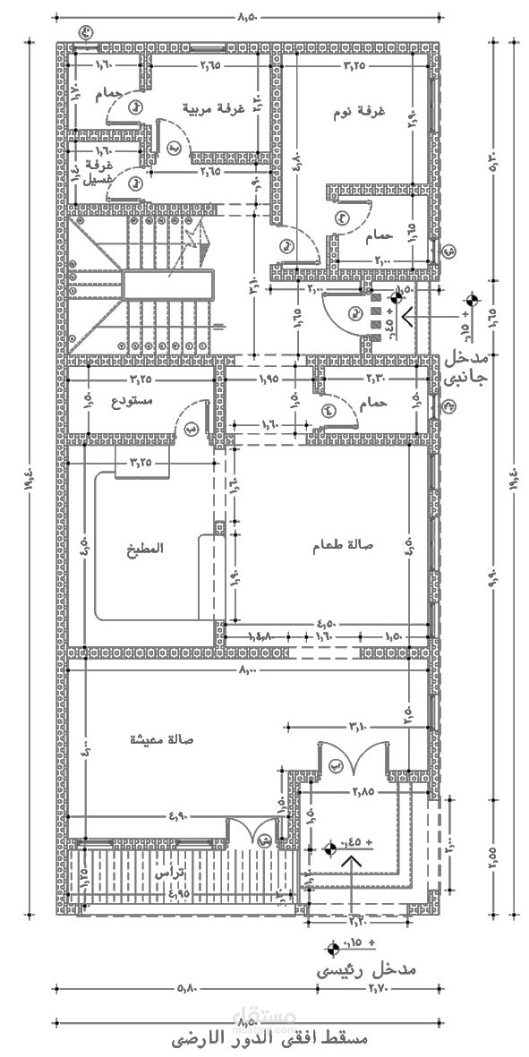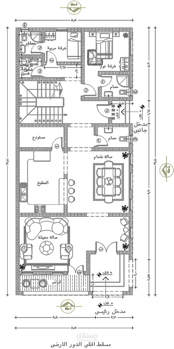 - مسقط أفقي للدور الأرضي مفروش و بالمقاسات