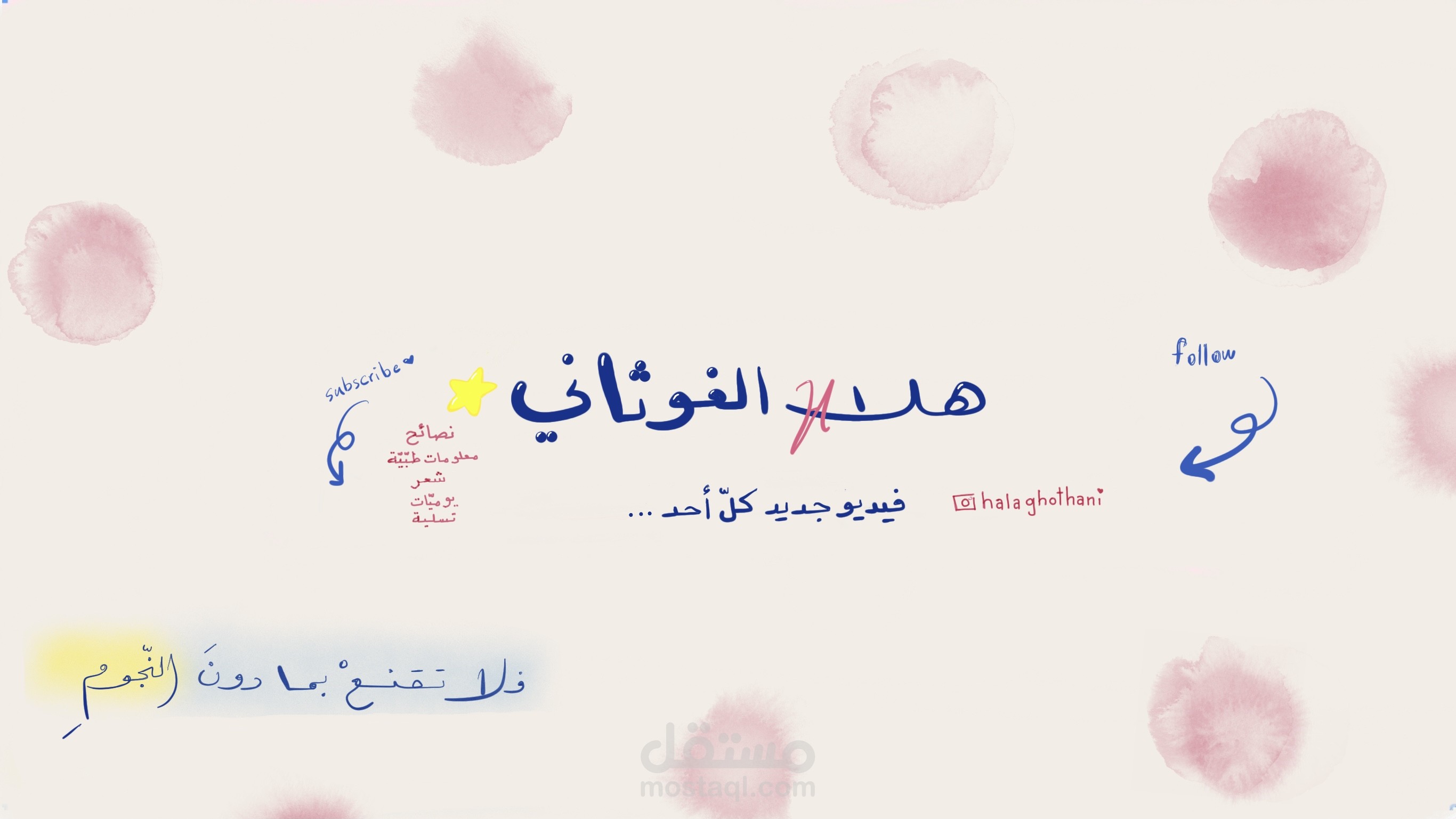 ثم أضع تصميم مبدئي يحوي صورة القناة واسمها وتفاصيل عنها واختصاصها