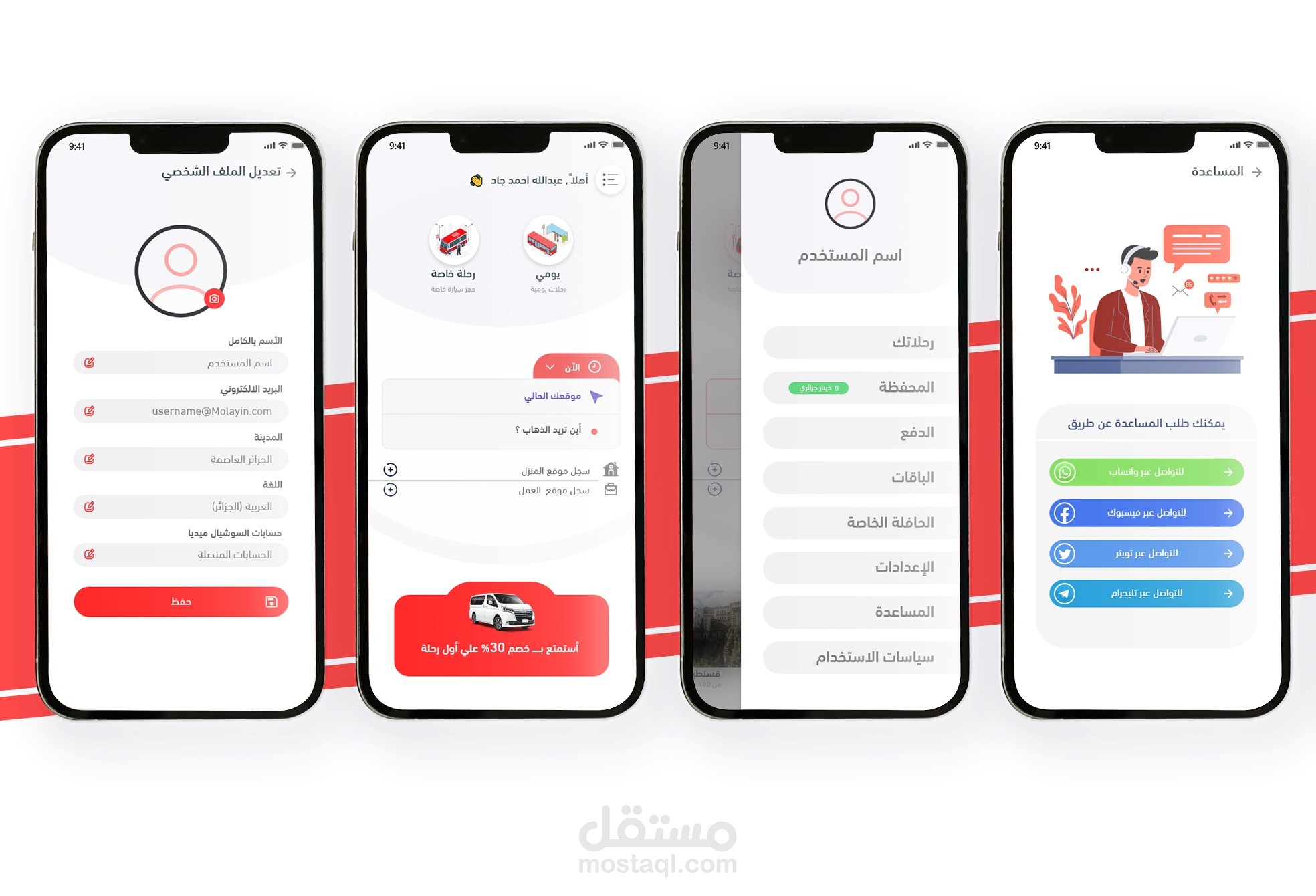 تصميم واجهة المستخدم لتطبيق للنقل والمواصلات
