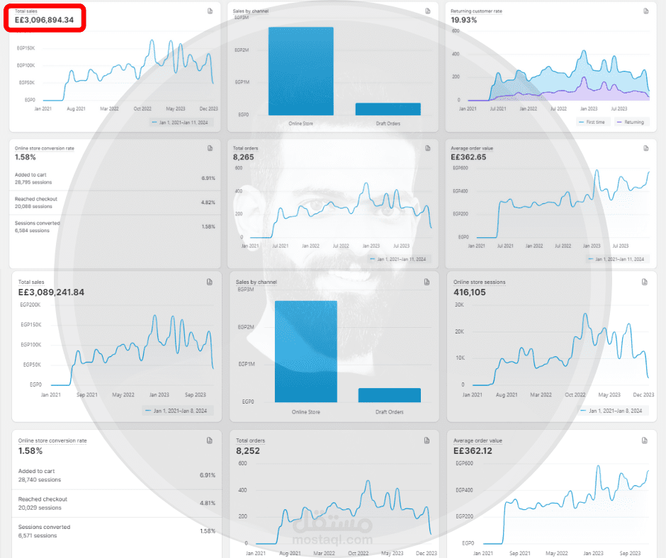 بالإضافة الى ارقام مبيعات متجر الكتروني على Shopify