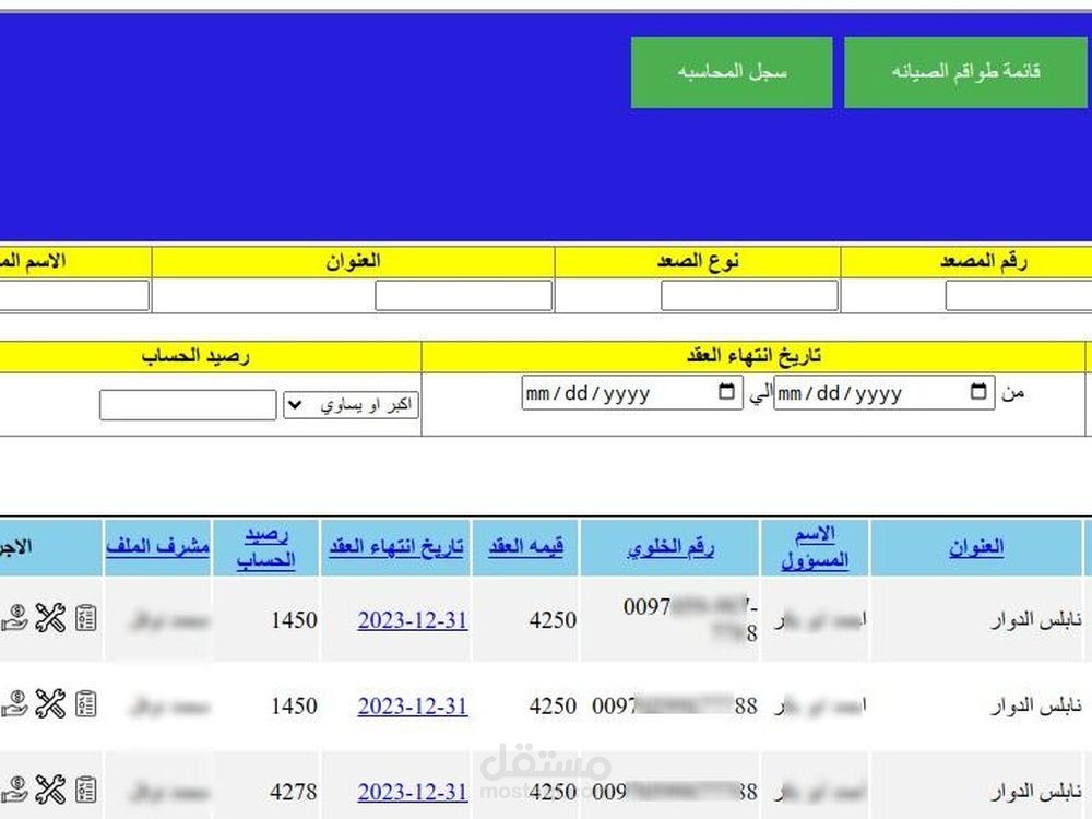 المشروع عباره عن برنامج كبير متكامل ليلبي كافة احتياجات شركه متخصصة في صيانة المصاعد