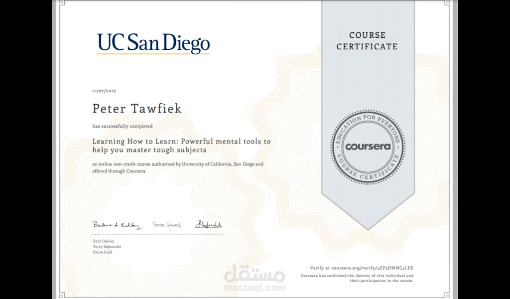 Learning How to Learn: Powerful Mental Tools to Help You Master Tough Subject by University of California, San Diego on Coursera