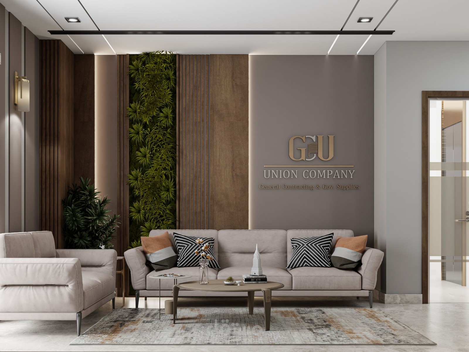 تصميم استقبال شركة باستخدام خامة توحى بالفخامه والرقى