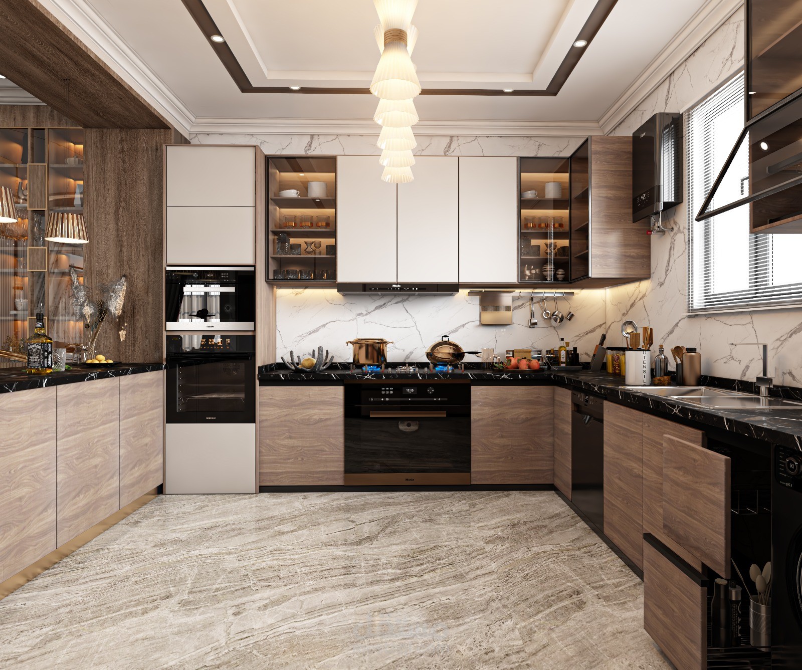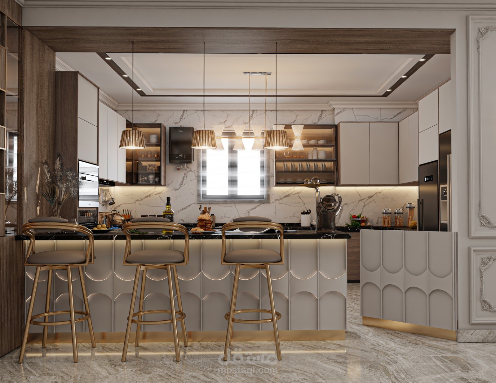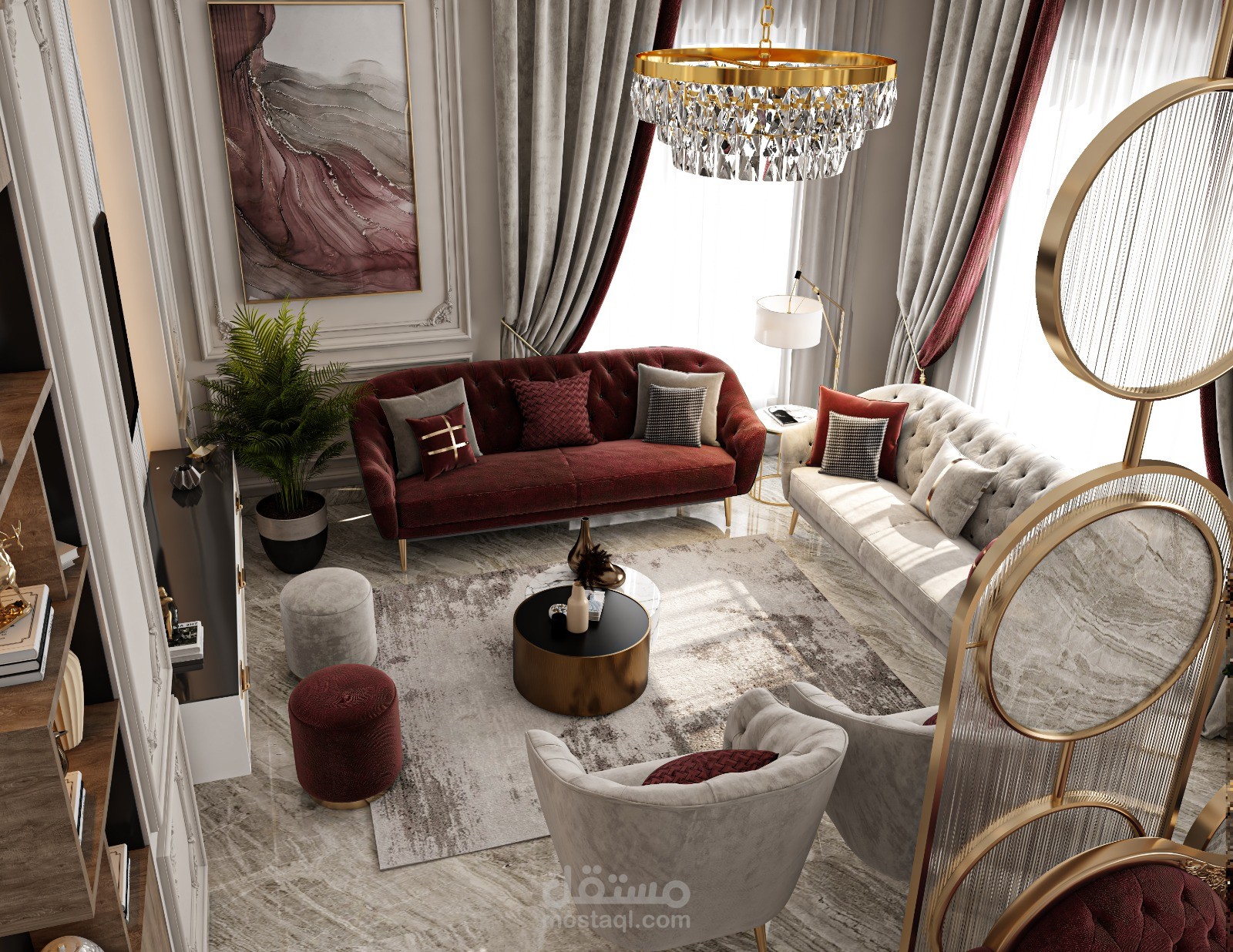 تصميم استقبال نيوكلاسيك فخم باثاث يوحى بالرقى والوان هادئة