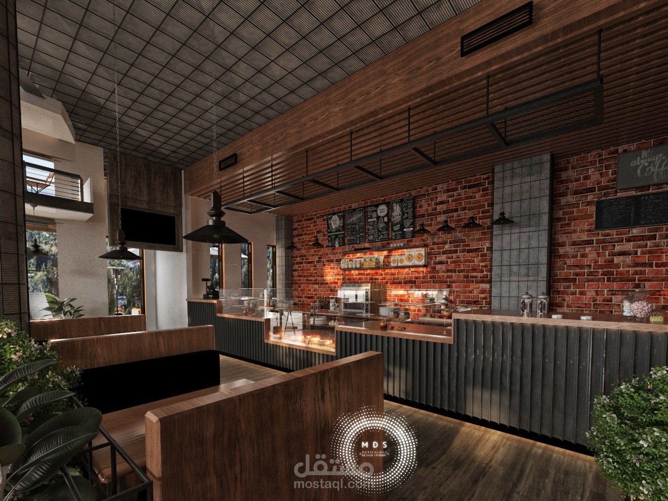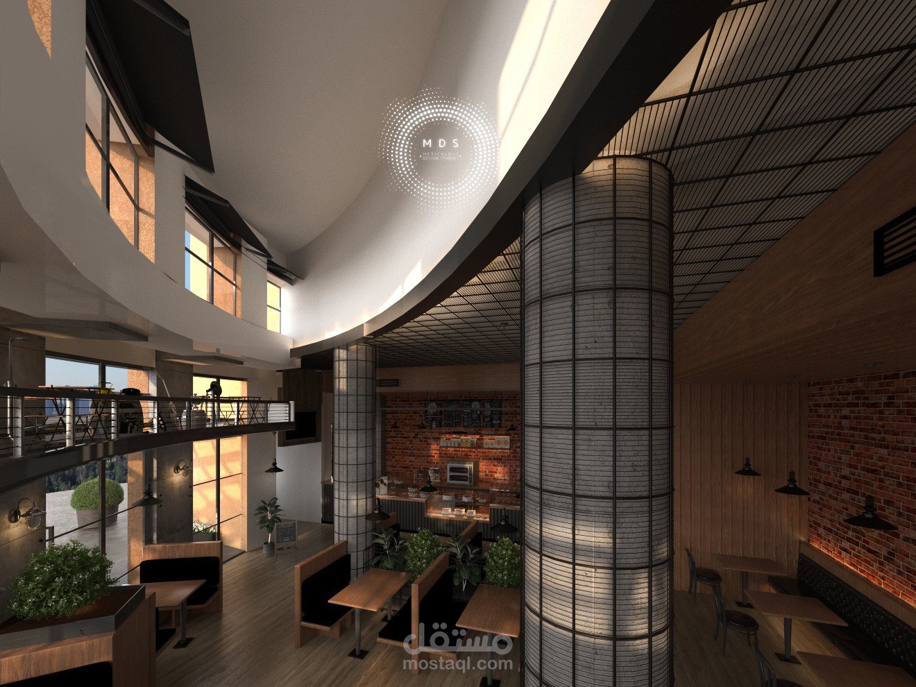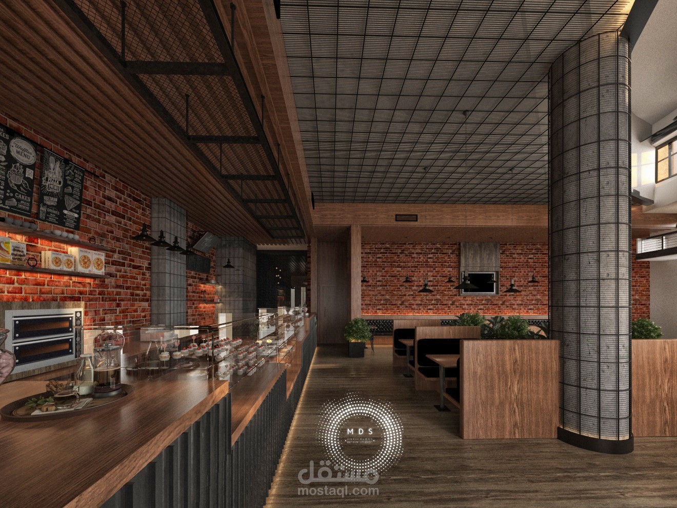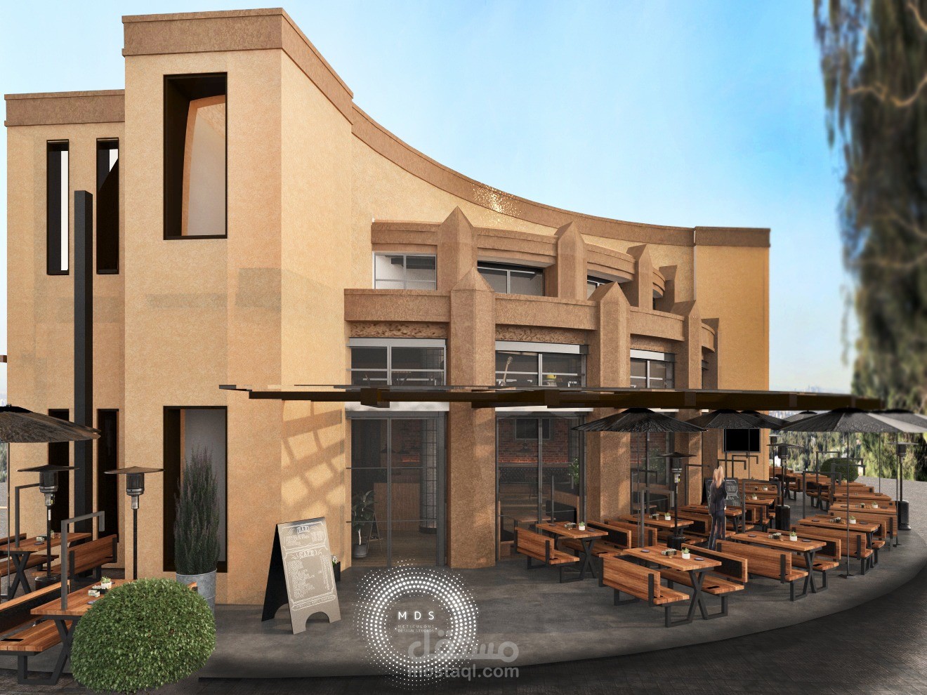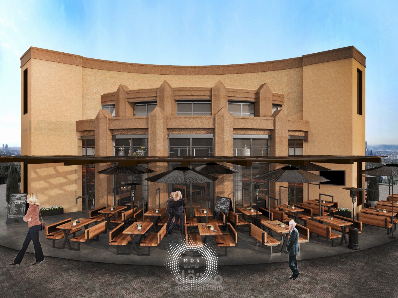 تصميم داخلى و تجسيد للفرش الخارجى لكافيه بمدينتى